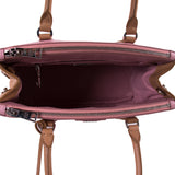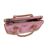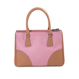 Details: Pesco and Natura (Pink and Tan) Saffiano Leather / Silver-Tone Hardware / Dual Rolled Handles / Detachable Adjustable Shoulder Strap / Pink Interior Lining / Three Compartments, Two with Zipper Closure / Flat and Zipper Closure at Inside