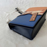 Navy Blue and Tan Saffiano Leather / Silver-Tone Hardware