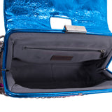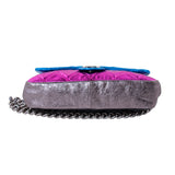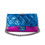 Details: Black, Bronze, Pink and Blue Glazed Leather / Silver-Tone Hardware / Chain Shoulder Strap / Grey Fabric Interior Lining / Single Compartment with Zipper Pocket / Button Closure and Magnetic Snap at Front Flap