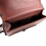 Details: Brown Lambskin Leather / Brushed Metal Hardware / Chain-Link and Leather Shoulder Strap / Single Compartment / Black Fabric Lining / Dual Flat and One Zipper Pocket at Inside / S-Lock Closure at Front Flap