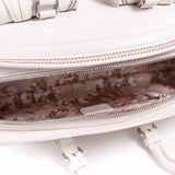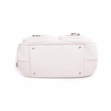 Details: White Soft Leather / Silver-Tone Hardware / Dual Rolled Handles / Dual Pockets at Exterior with C & D Letters / Protective Studs at Base / Woven Print Lining / Dual Pockets at Inside / Zipper Closure at Top