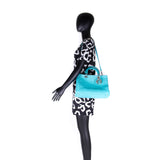 Nude Leather Lining / Dual Interior Pockets / Magnetic Snap Closure At Top Protective Studs At Base / Logo Charm On Front / Detachable Pouch