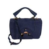 Details: Navy Blue Suede / Gold-Tone and Metal Hardware / Adjustable and Detachable Shoulder Strap with a Top Handle / Leather and Fabric Interior Lining / Single Compartment with Three Flat Pocket / Push Lock Closure at Flap