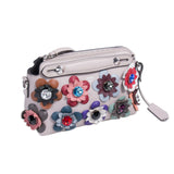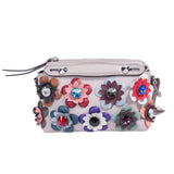 Details: Grey Leather / Silver-Tone Hardware / Floral Embellishment at Exterior / Dual Handles / Detachable Adjustable Shoulder Strap / Logo at Front / Fabric Interior Lining / Interior Pocket / Zip Closure at Top