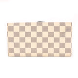 Details: Navy And Cream Damier Azur Coated Canvas Leather / Brass Hardware / Creme Coated Lining / Creme Leather At Interior / Four Compartments, One With Zip Closure / Ten Card Slots / Magnetic Snap Closure At Front