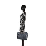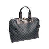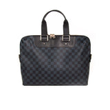Details: Black and Blue Damier Graphite Coated Canvas / Silver-Tone Hardware / Dual Rolled Handles / Black Leather Trim / Black Alcantara Lining / 1 Compartment and 5 Interior Pockets / Zip Closure at Top