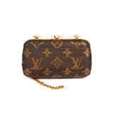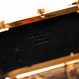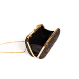 Details: Black and Bronze Satin / Gold-Tone Hardware / Monogram Logo at Front and Back/ Black Leather Lining / Small Chain Strap / Single Compartment / Push Lock Closure
