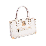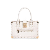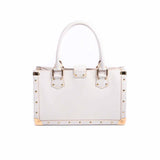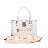 Details: Off White Structured and Smooth Leather / Gold-Tone Hardware / Dual Rolled Hnadles / Single Pocket at Exterior / Studs at Exterior / Woven Print Lining / Three Pockets at Inside / S-Lock Closure at Top