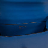 Details: Blue Saffiano Leather / Gold-Tone Hardware / Chain Shoulder Strap with Leather Pad / Single Compartment / Black Woven Interior / Slit Pocket at Inside / Turn-Lock Closure at Front Flap