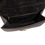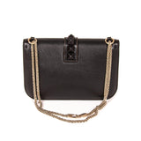 Details: Black Grained Leather / Light Gold-Tone Hardware / Adjustable Chain Shoulder Strap / Studs Embellishments at Front and Top / Suede Interior Lining / Single Compartment / Two Pockets at Inside, One with Zipper / S-Lock Closure at Front Flap