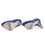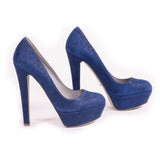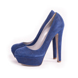 Details: Cobalt Embossed Suede / Blue Color / Round-Toe / Covered Heels