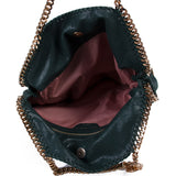 Details: Green Vegan Leather / Gold-Tone Gunmetal Hardware Chain / Dual Chained Handles / Chained Shoulder Strap / Pink Printed Interior Lining / Zipped Pocket at Inside / Magnetic Snap Closure at Top