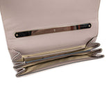 Details: Nude Leather / Light Gold-Tone Hardware / Detachable and Convertible Shoulder Strap / Hand Strap at Front Face Featuring Rockstud Accents / Black Leather Trim / Dual Compartment at Inside with a Flat Pocket / Magnetic Snap Closure at Front Face