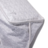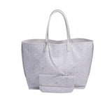 Details: White and Grey Coated Canvas / Silver-Tone Hardware / Dual Rolled Handles / White Leather Interior / Open Top / Attached Pouch
