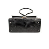 Black Shiny Crocodile Embossed Leather