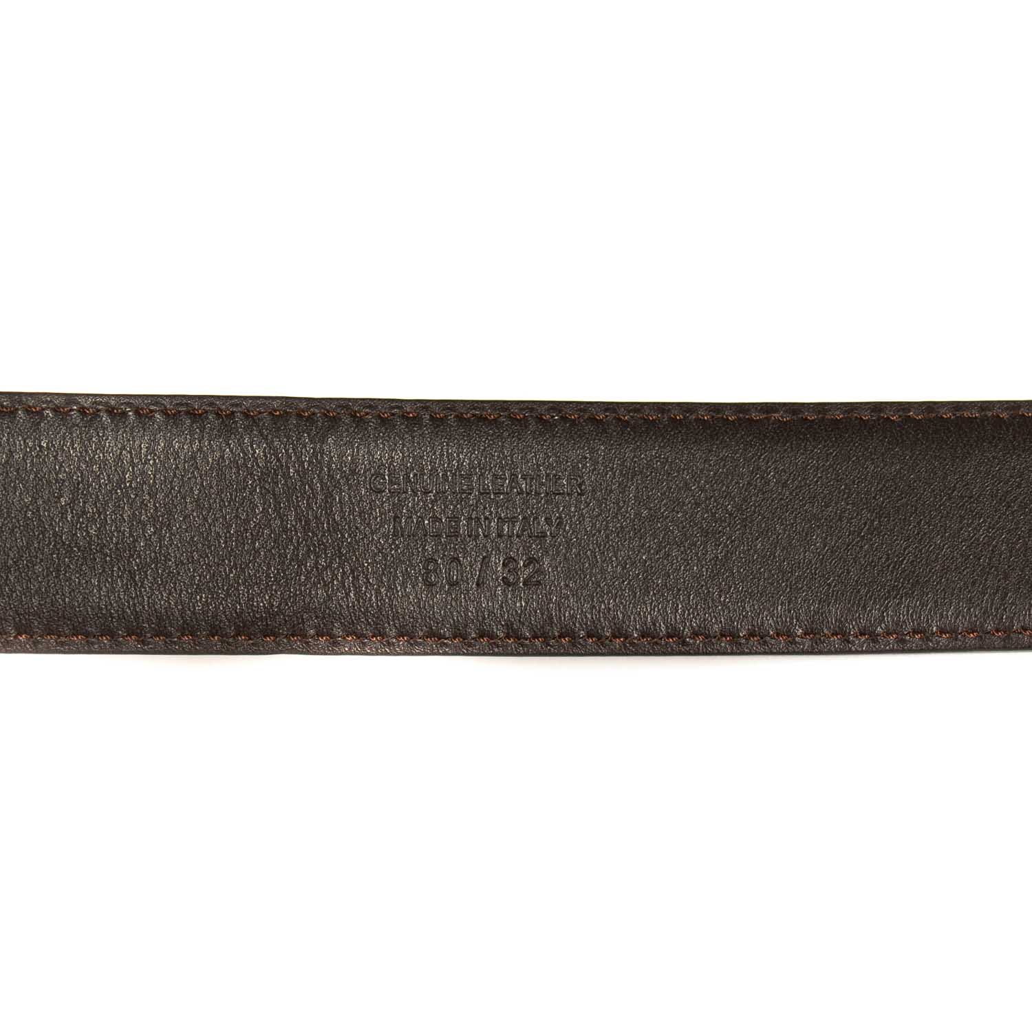 Details: Brown Leather / Gold-Tone Hardware / Logo Buckle / Peg-in-Hole Closure
