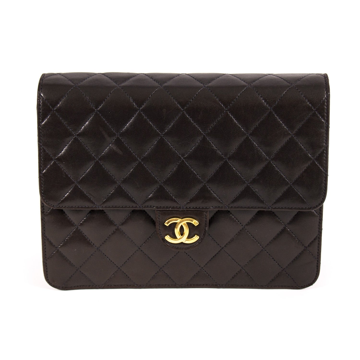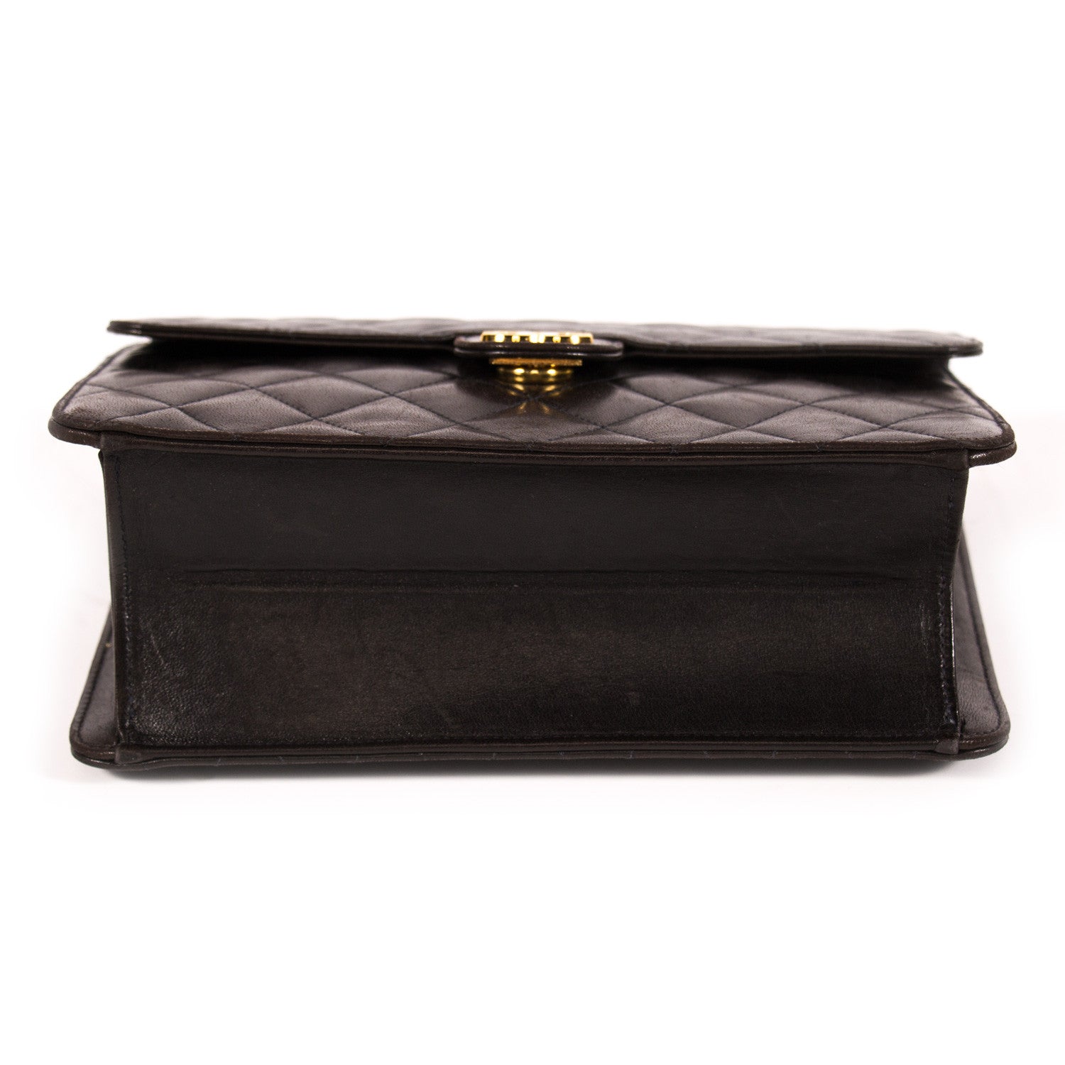 Details: Black Quilted Lambskin Leather / Gold Tone Hardware / Single Chain-Link And Leather Accent Shoulder Strap / Burgundy Leather Interior Lining / Single Zip Pocket At Interior Wall / Flap Closure At Front With Push Lock