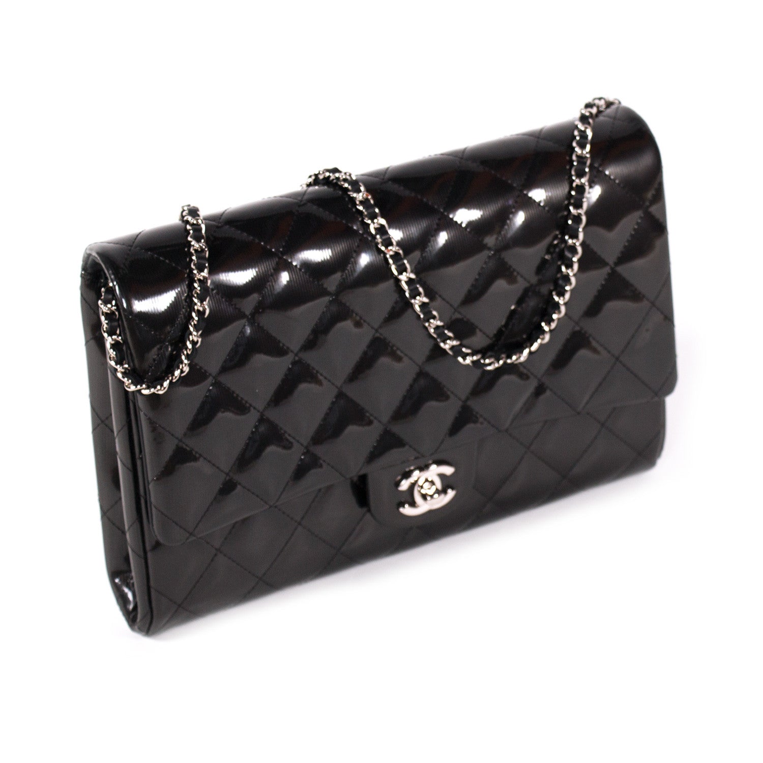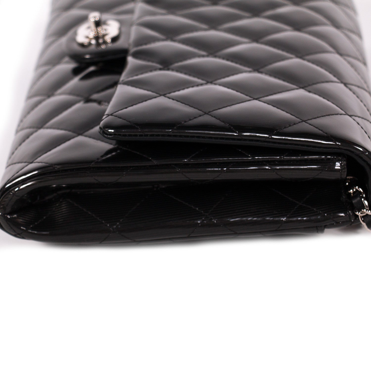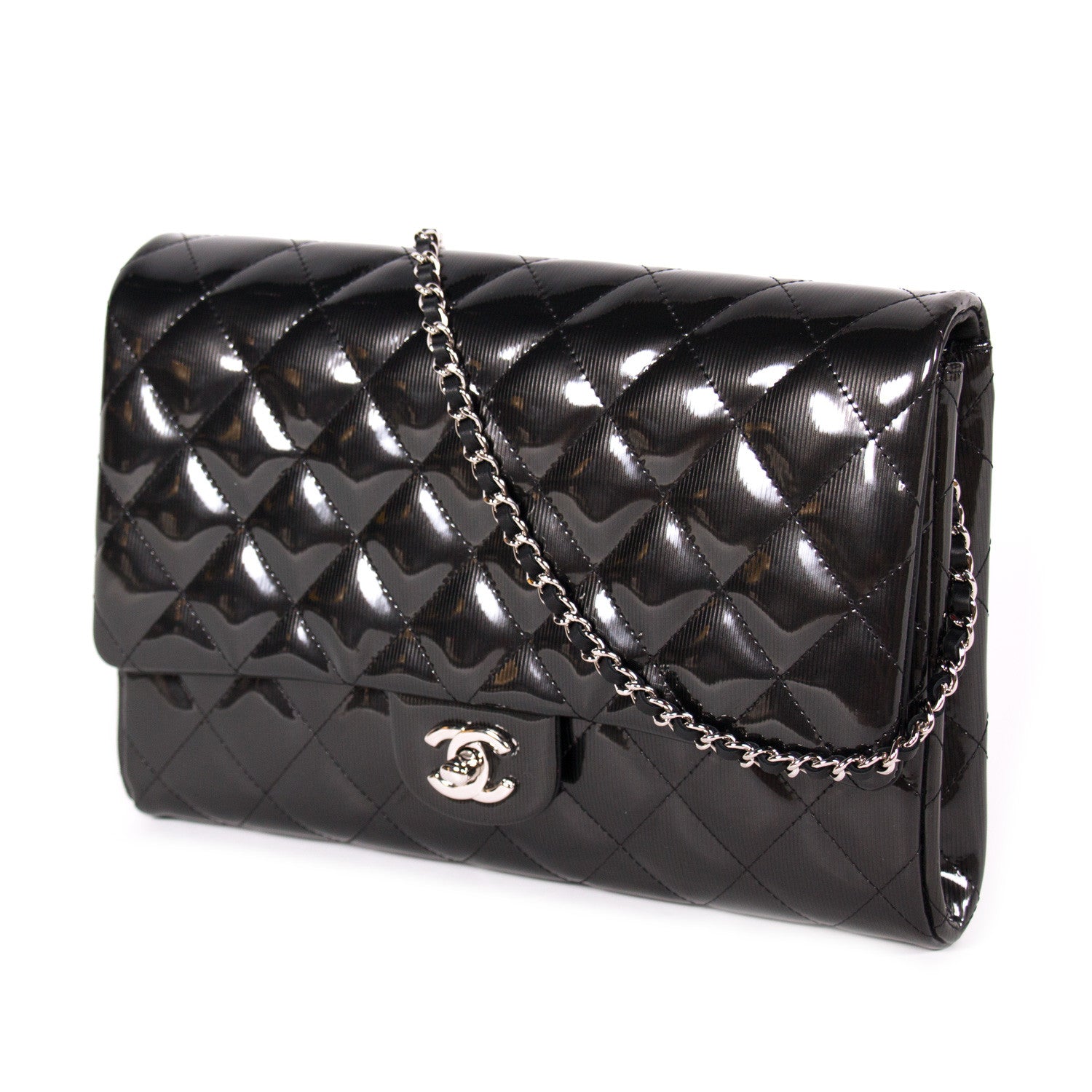 Details: Black Patent Quilted Leather / Silver-Tone Hardware / Single Shoulder Strap / Exterior Pocket At Back / Single Compartment / Flat Pocket At Interior / Turn Lock Closure At Front Flap