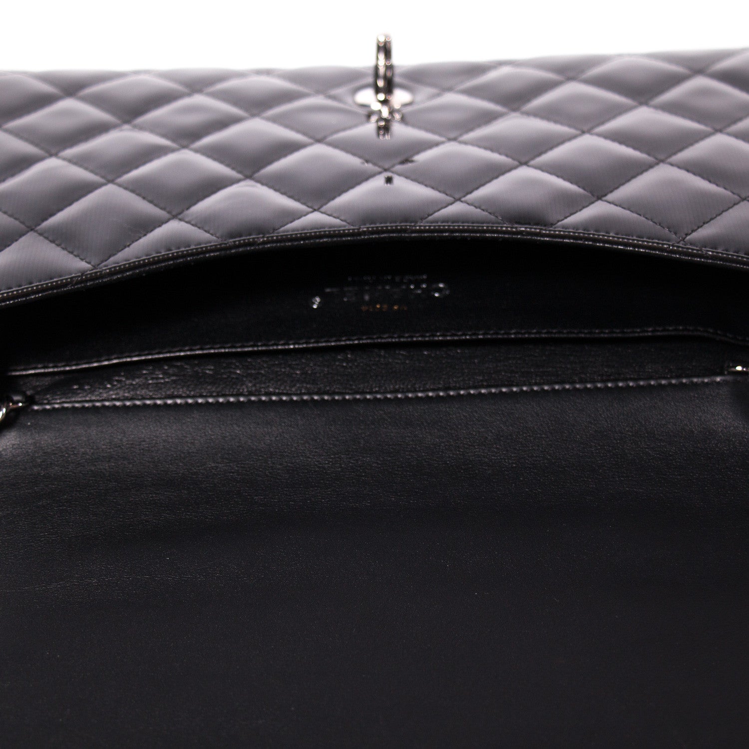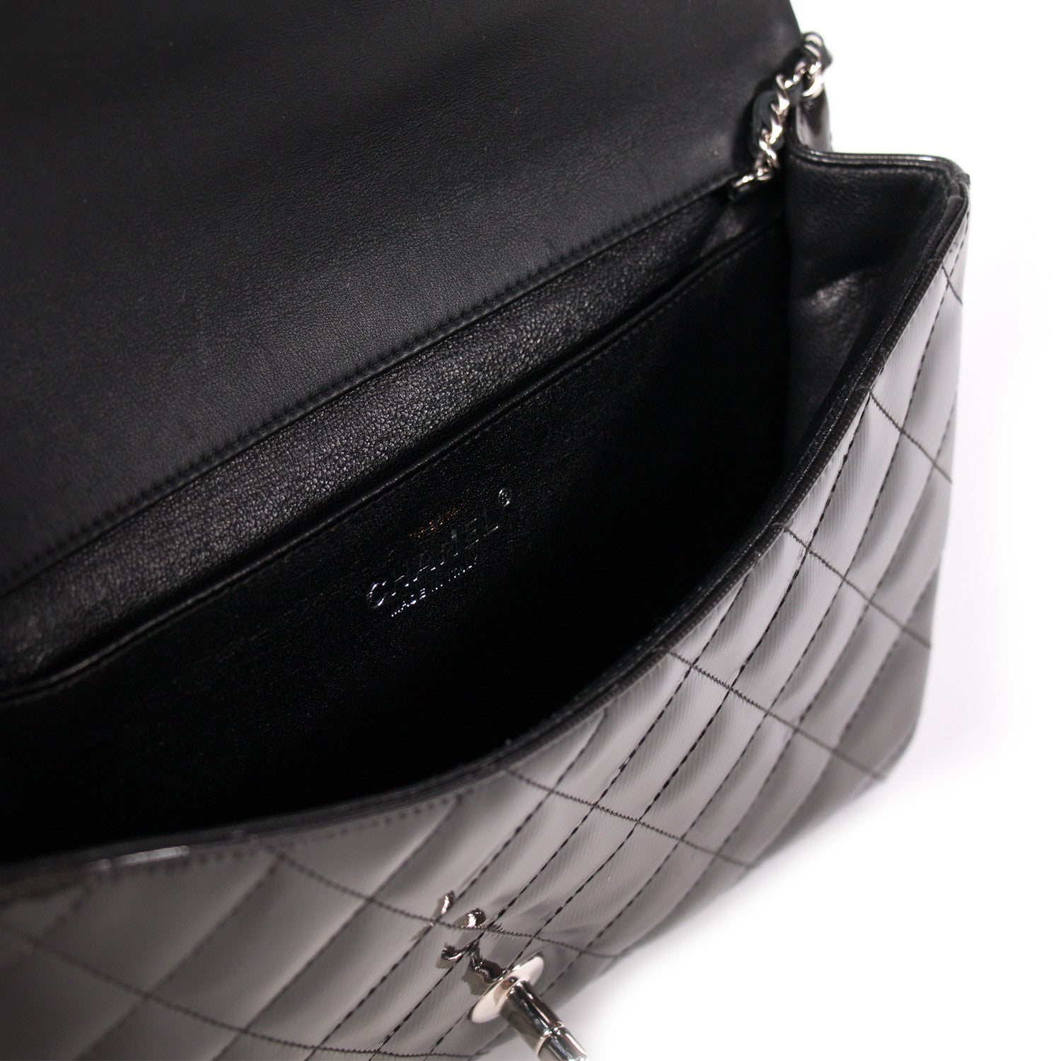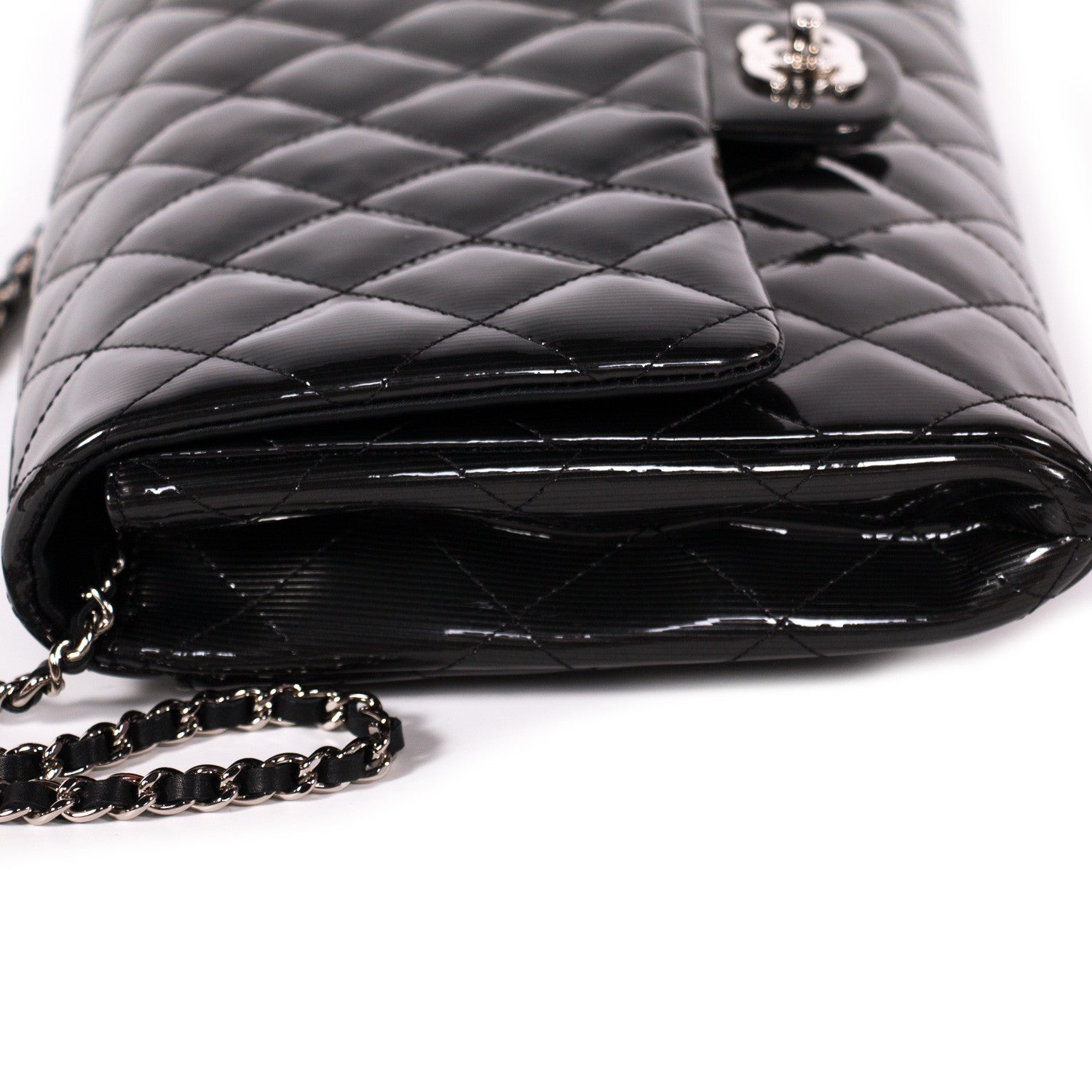Details: Black Patent Quilted Leather / Silver-Tone Hardware / Single Shoulder Strap / Exterior Pocket At Back / Single Compartment / Flat Pocket At Interior / Turn Lock Closure At Front Flap