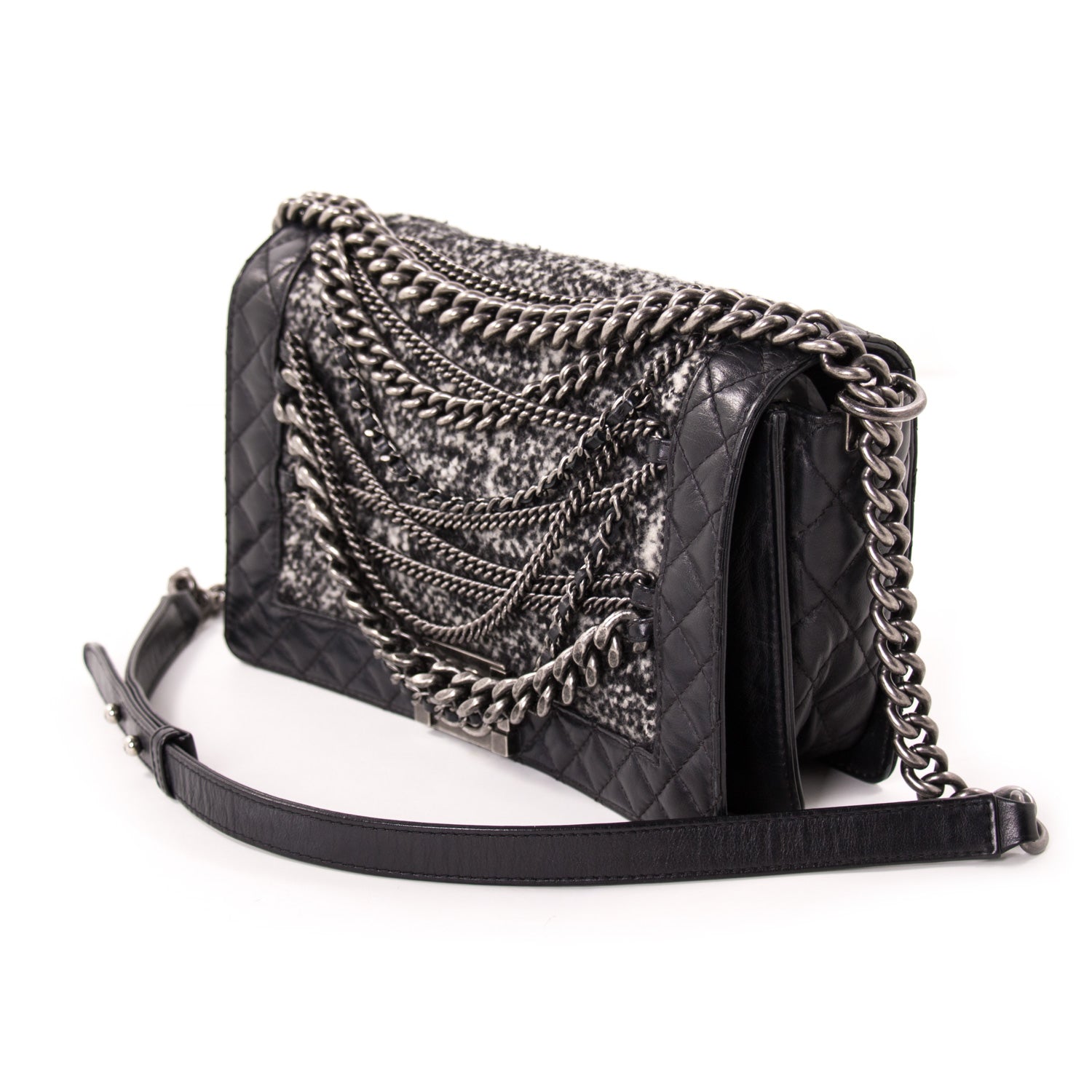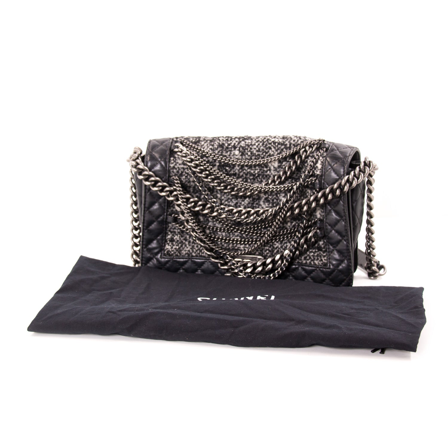 Description: Authentic Pre-Owned Chanel New Medium Enchained Leather Tweed Boy Flap Bag