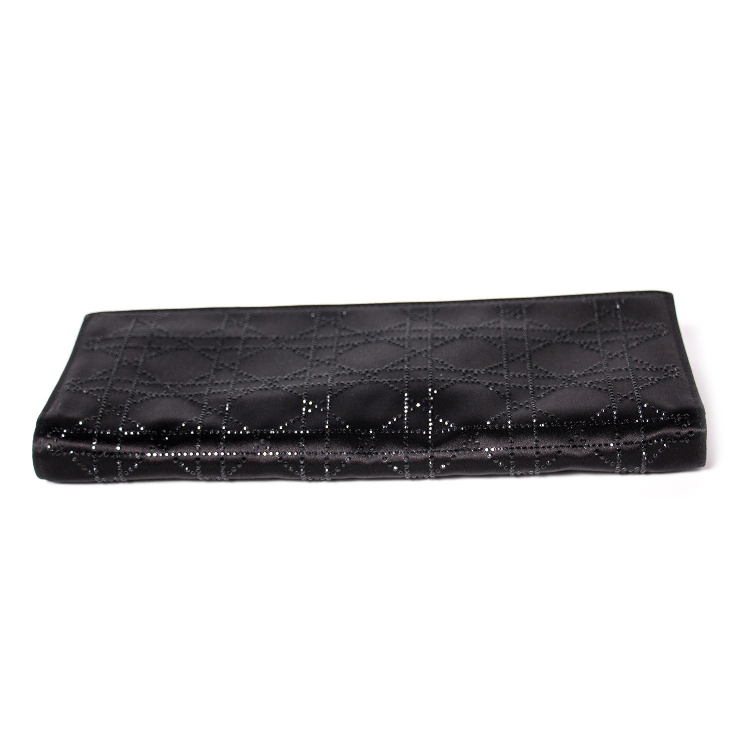 Description: Authentic Christian Dior Lady Dior Black Cannage Satin Clutch