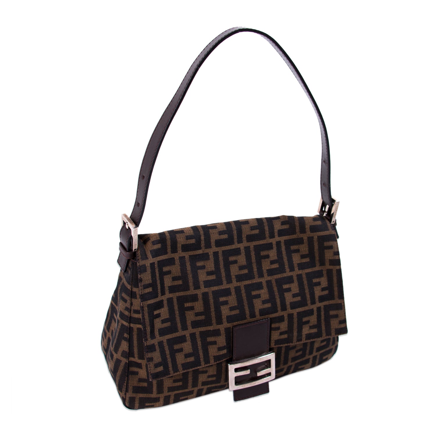 Details: Brown Zucca Canvas / Silver-Tone Hardware / Black Leather Adjustable Shoulder Strap / Brown Fabric Interior Lining / Single Pocket at Interior Wall / Snap Closure at Front