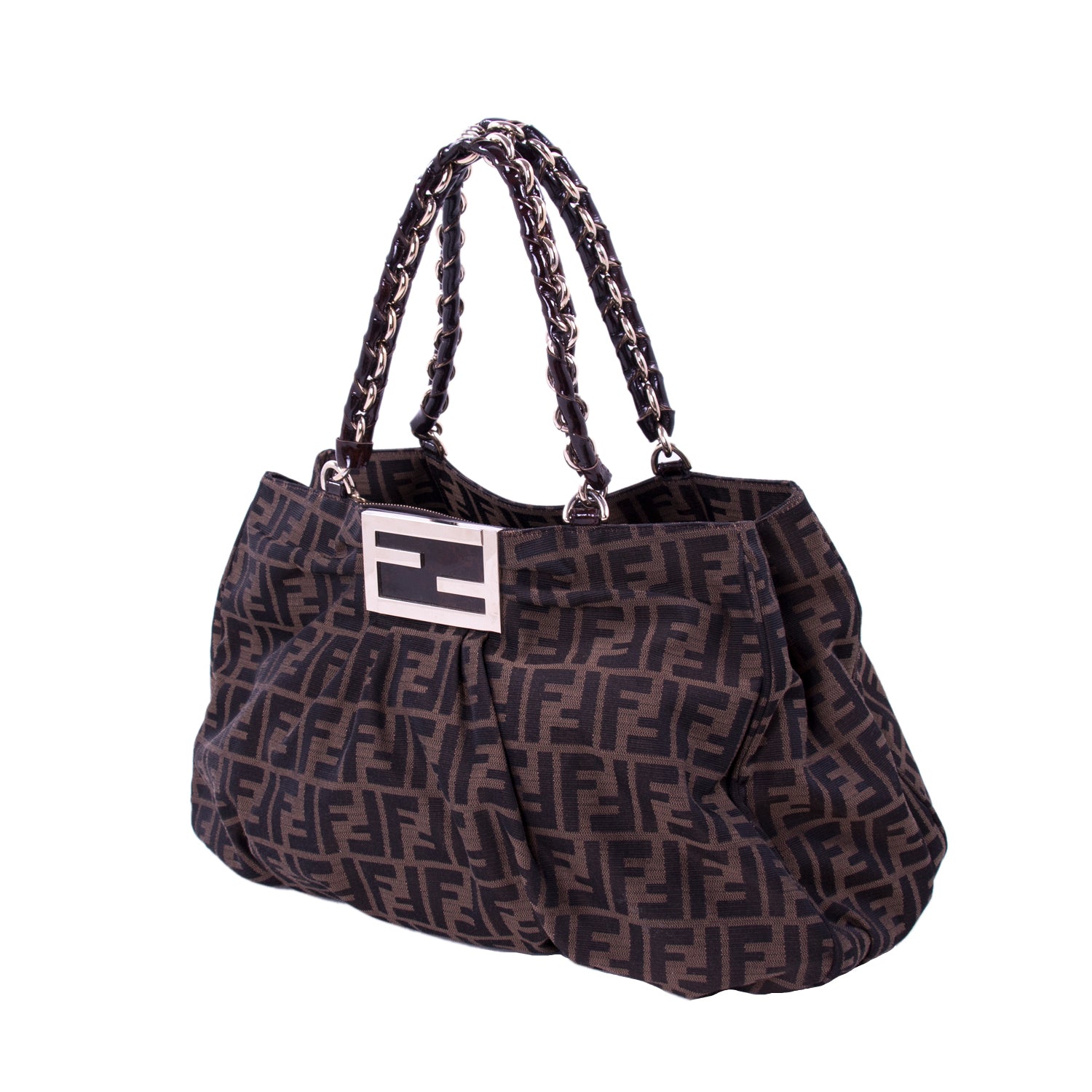 Description: Authentic Pre-Owned Fendi Mia Large Zucca Canvas Bag