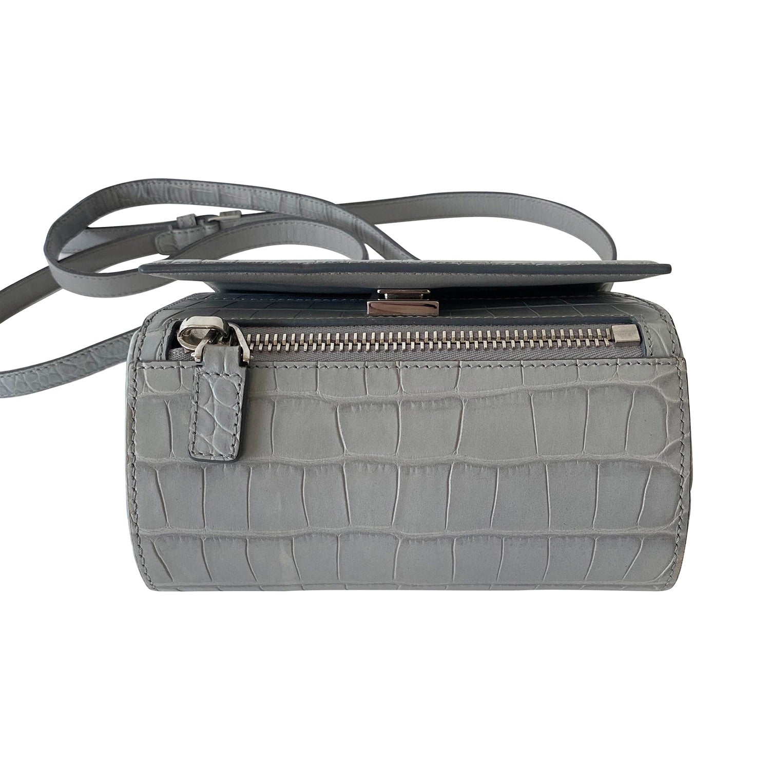 Silver Crocodile Embossed Leather / Silver-Tone Hardware