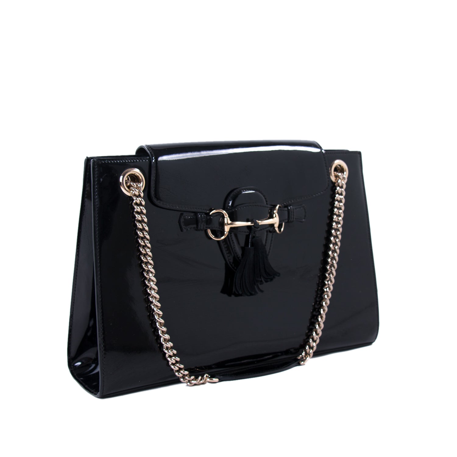 Description: Authentic Pre-Owned Gucci Emily Large Patent Leather Shoulder Bag