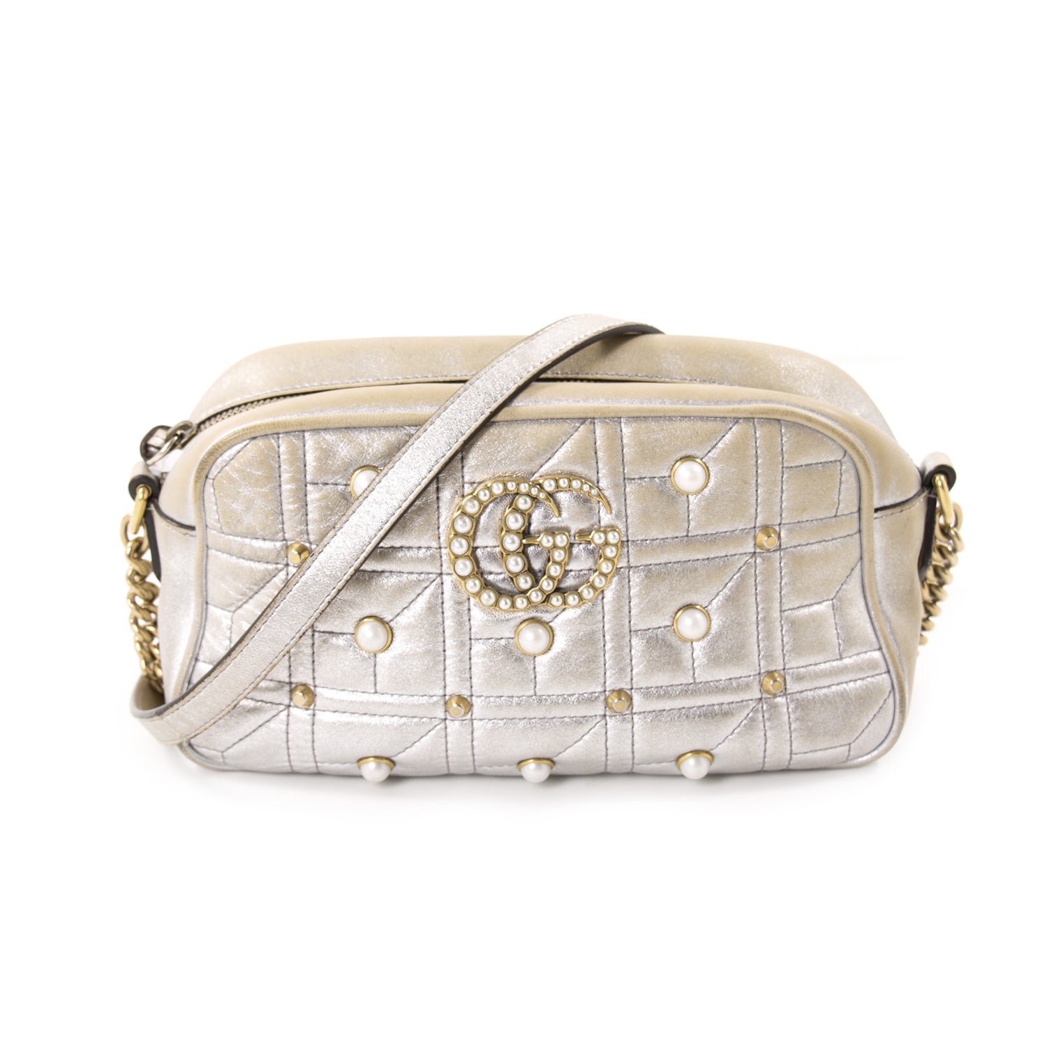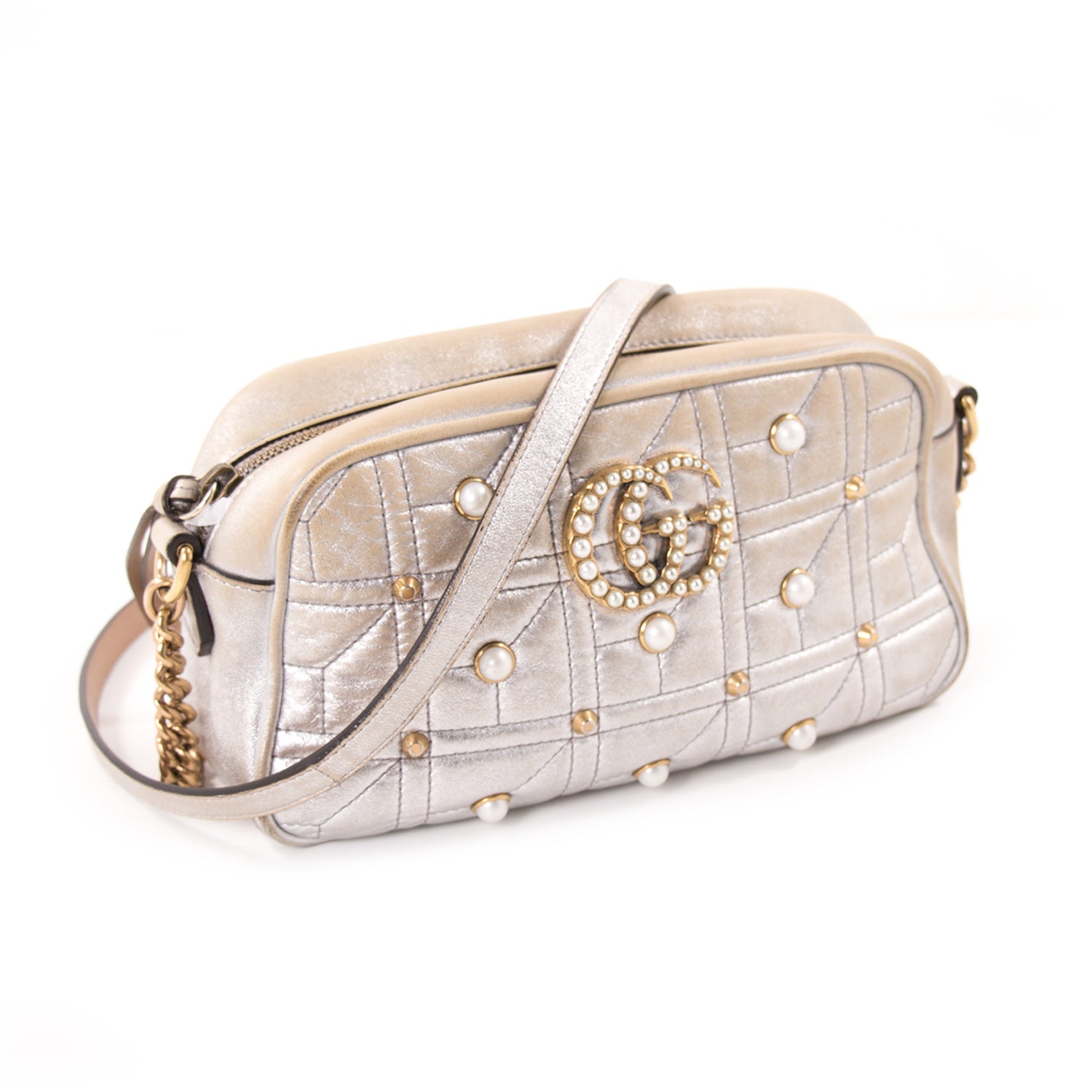 Description: Authentic Pre-Owned Gucci GG Marmont Matelassé Silver Metallic Shoulder Bag