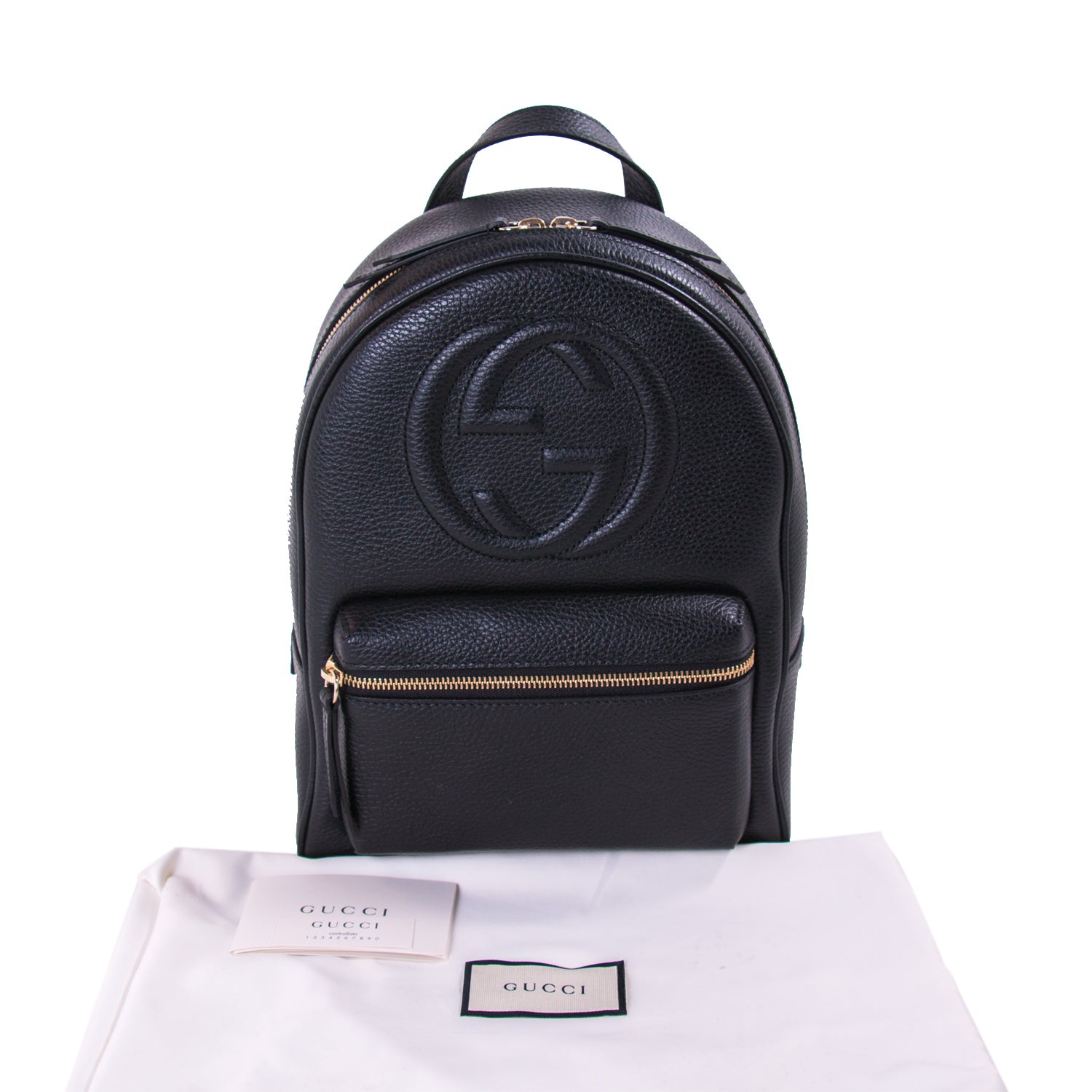 Description: Authentic New Gucci Black Soho Textured-Leather Backpack