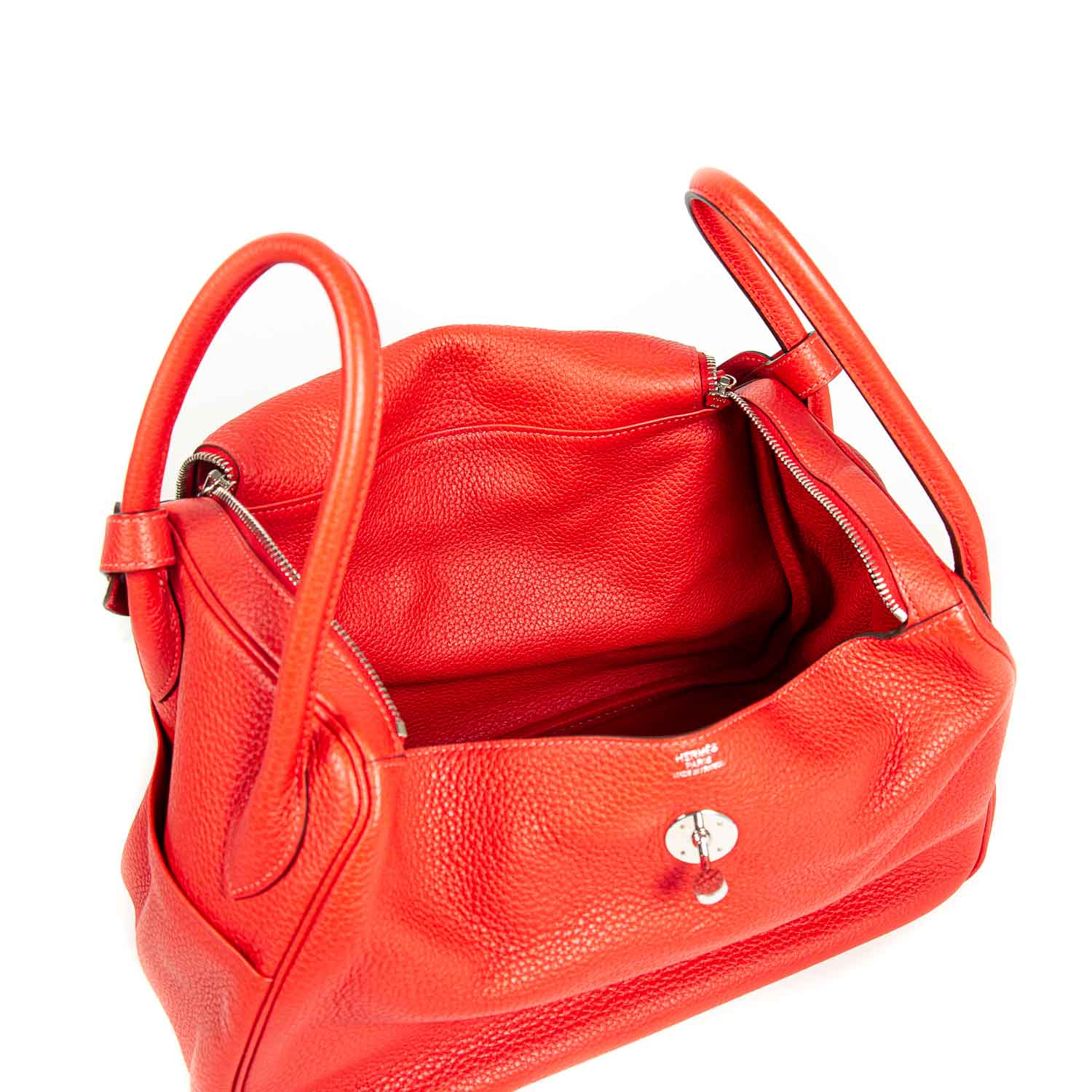 Description: Authentic Pre-Owned Hermès Lindy 34 Rouge Pivoine Clemence