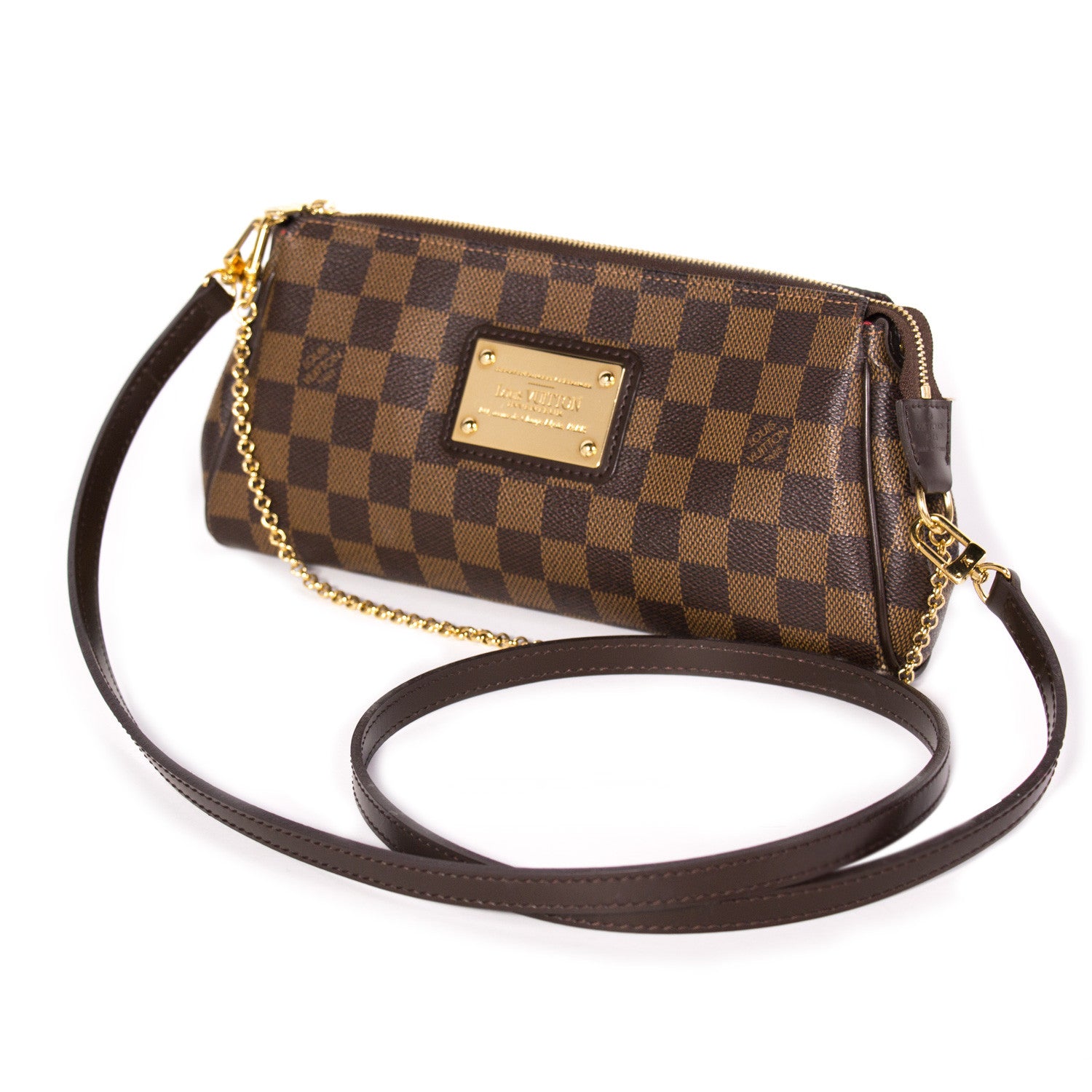 Description: Authentic Louis Vuitton Damier Ebene Eva Clutch