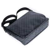 Details: Black And Grey Men Messenger Bag In Damier Graphite Coated Canvas Leather / Black Leather Trim / Silver Tone Hardware / Zip Pocket At Exterior Pocket / Woven Adjustable Shoulder Strap / Woven Interior Lining / Large Slit Pocket Underlay / Single Large Compartment With Two Interior Small Pockets / Magnetic Snap Closure At Interior