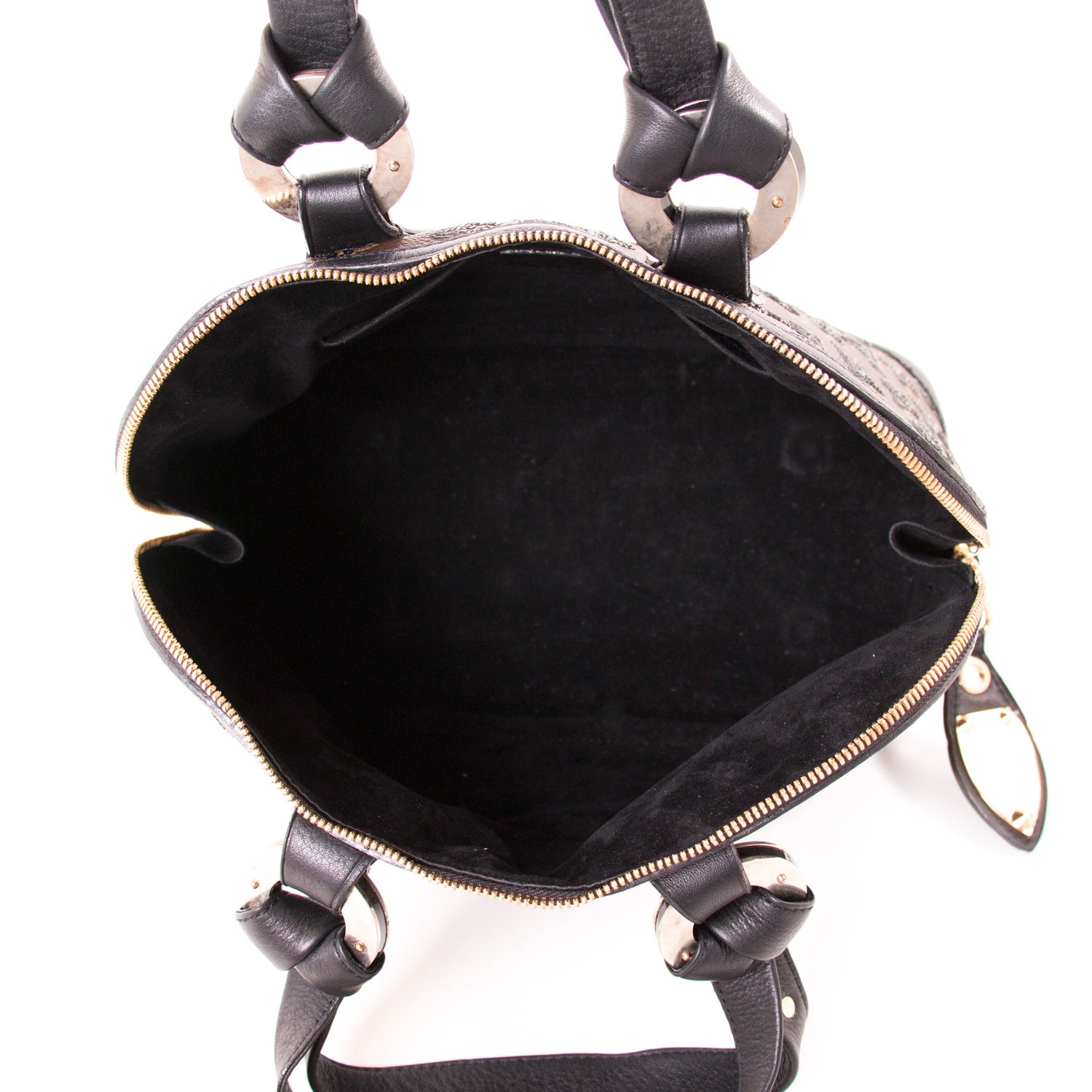 Details: Monogram Coate Canvas with Black Sequin / Gold-Tone and Silver Hardware / Dual Leather Shoulder Strap / Black Leather Accent / Black Toile Canvas Lining / Slit Pocket at Interior / Dual Zip Closure at Top / Protective Studs at Base