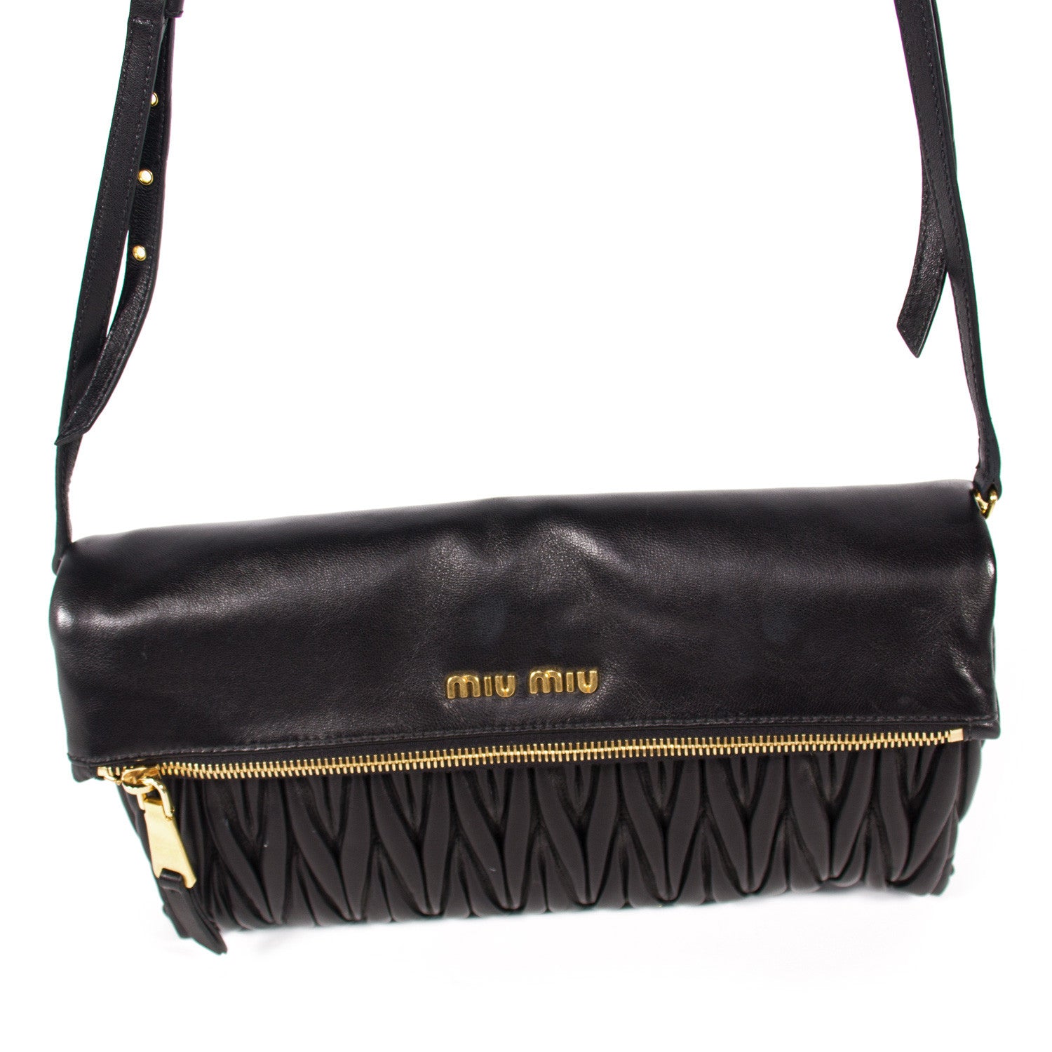 Description: Authentic Miu Miu Matelasse Pochette Nero With Strap