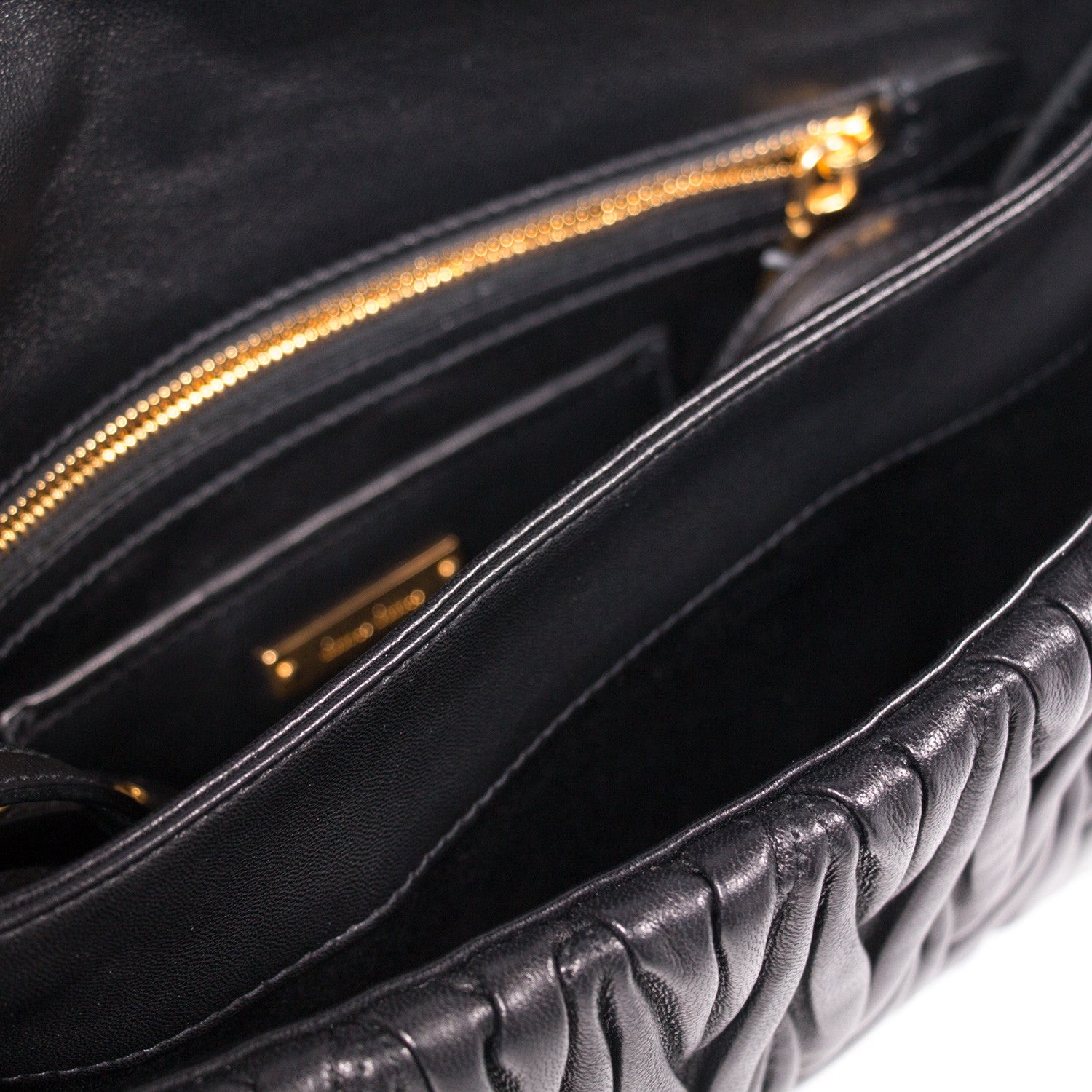 Details: Black Matelasse Lambskin Leather / Gold Tone Hardware / Detachable And Adjustable Shoulder Strap / Hand Slot At Back / Black Leather And Satin Lining At Interior / Dual Compartments At Interior And One At Exterior With Zip Closure / Three Pockets One With Zip Closure / Magnetic Snap Closure At Front Flap