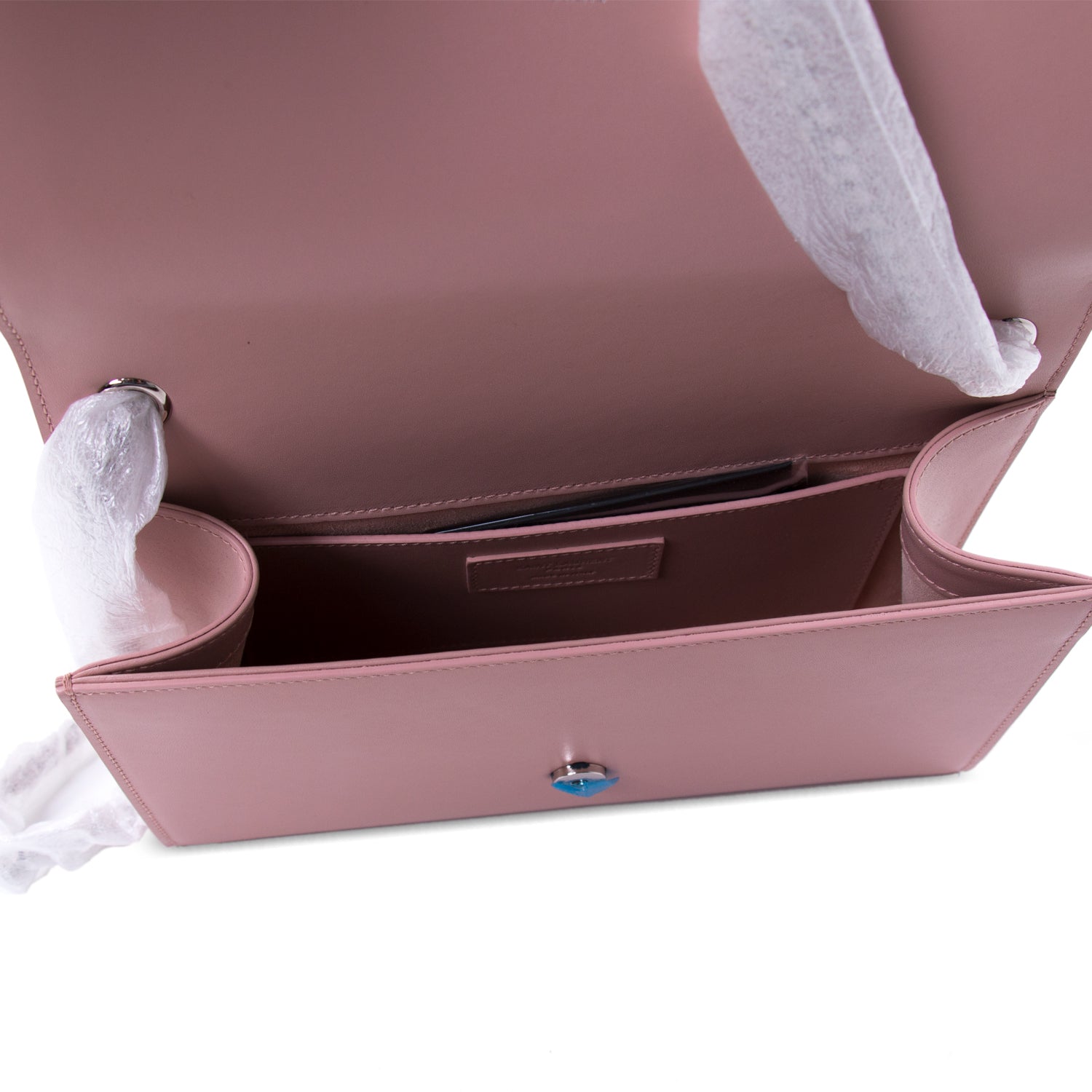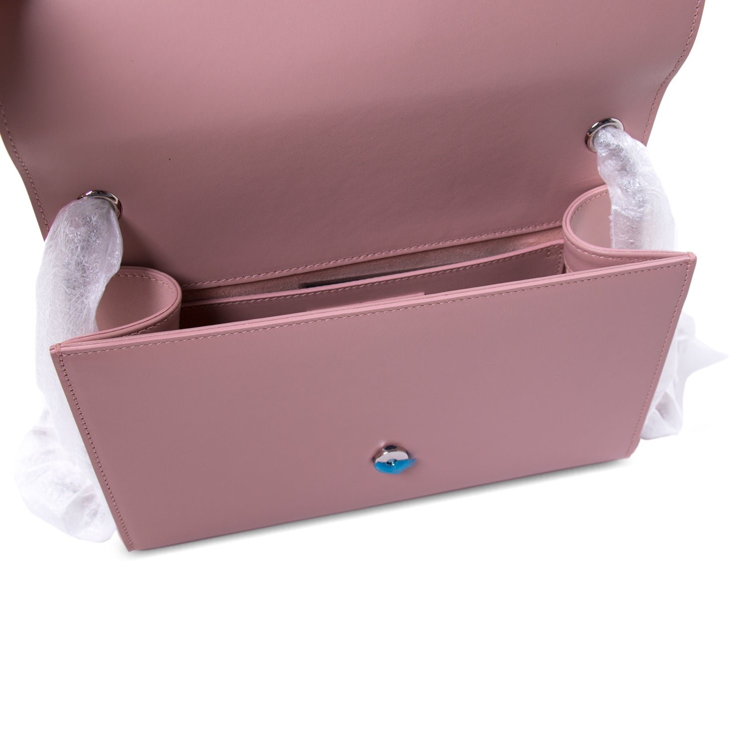 Details: Pale Pink Calf Leather / Silver-Tone Hardware / Logo and Tassel Endowment at Front / Chain Shoulder Strap / Single Compartment / Suede Lining / Flat Pocket / Magnetic Snap Closure at Front