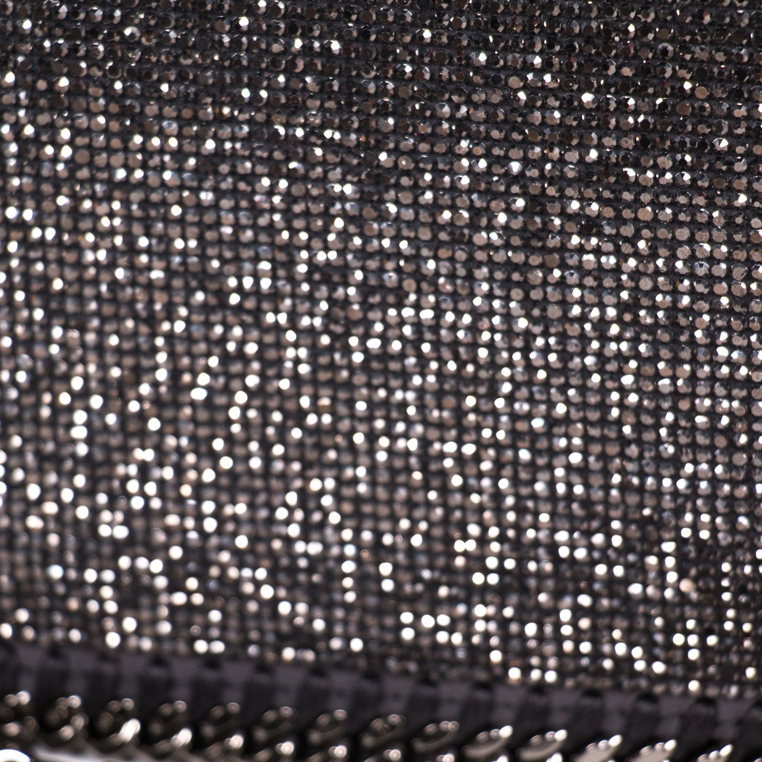 Details: Grey And Silver Crystal Embellished Shoulder Bag / Silver-Tone Hardware / Crystal Adornments Throughout / Concealed Chain Shoulder Strap / Grey Fabric Lining At Interior / Single Internal Slit Pocket / Magnetic Snap Closure At Front Flap
