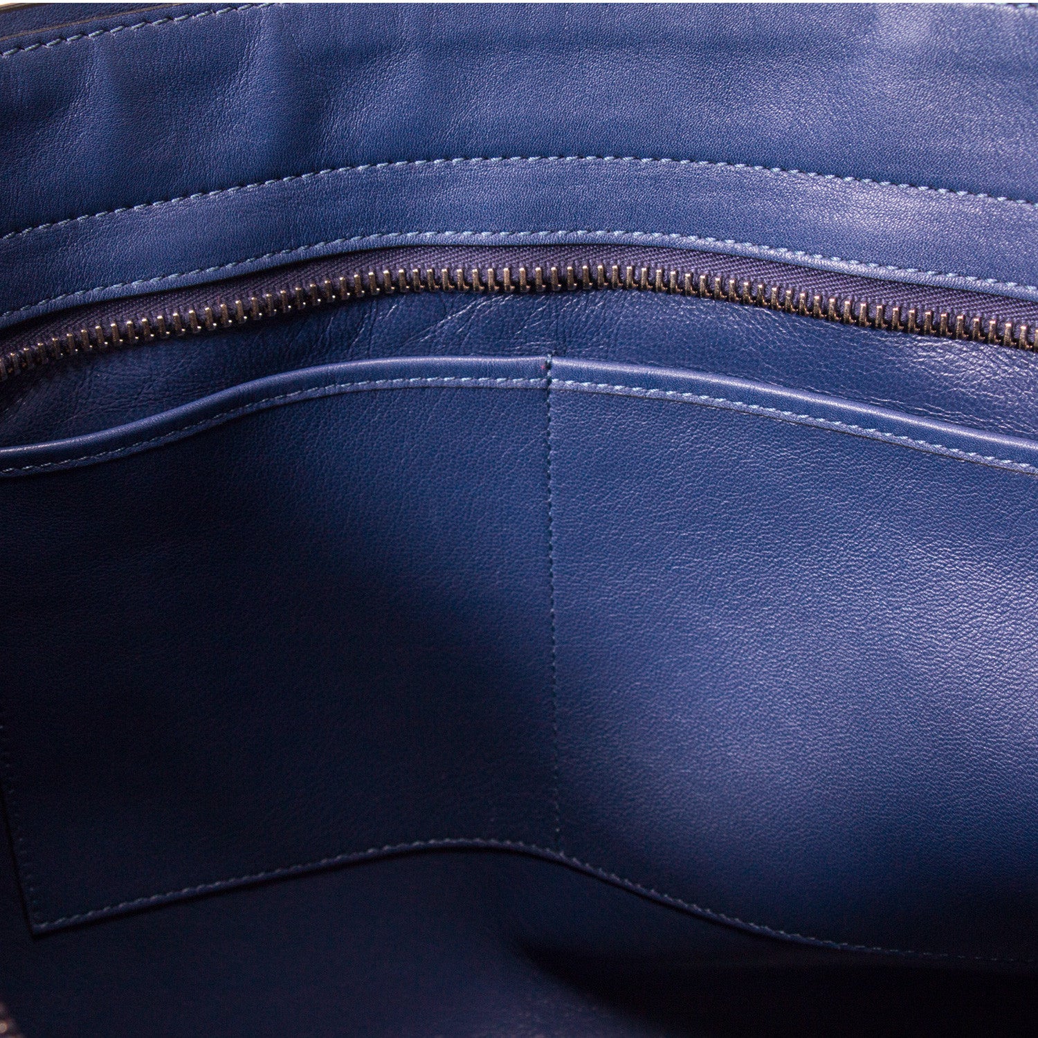 Details: Blue Leather / Dual Rolled Handles / Silver Tone Studs Embellishments at Corners / Foil Logo at Back / Top Zip Closure / Inheritor Zip / Tow Wall Pockets / Fall 2013 Collection