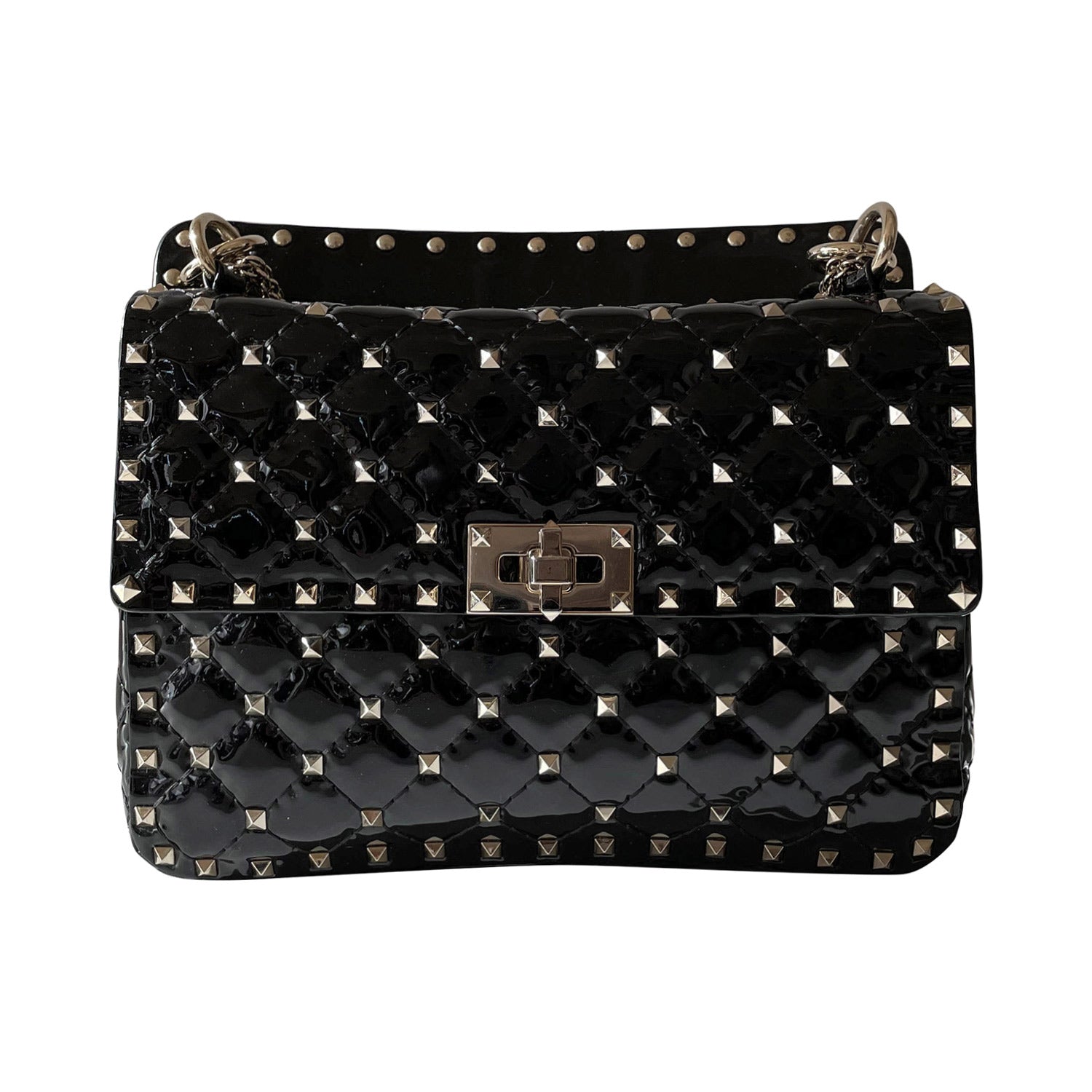 Description: Authentic Pre-Owned Valentino Rockstud Spike Medium Chain Shoulder Bag