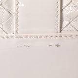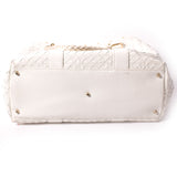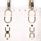 Details: White Quilted Leather / Gold-Tone Hardware / Dual Leather Rolled Handles / Gunmetal Studded Details Throughout / Interior Beige Satin Lining / Three Compartment, One With Zip Closure / Zip Pocket At Wall / Dual Flat Pockets At Interior Wal / Magnetic Snap Closure At Top