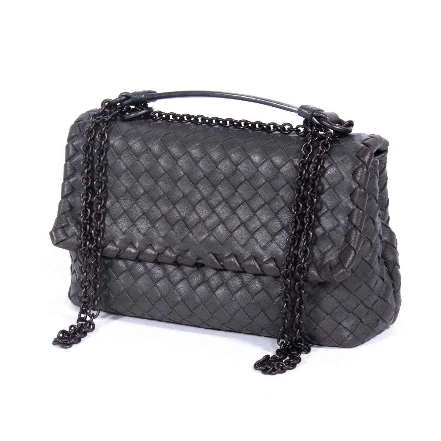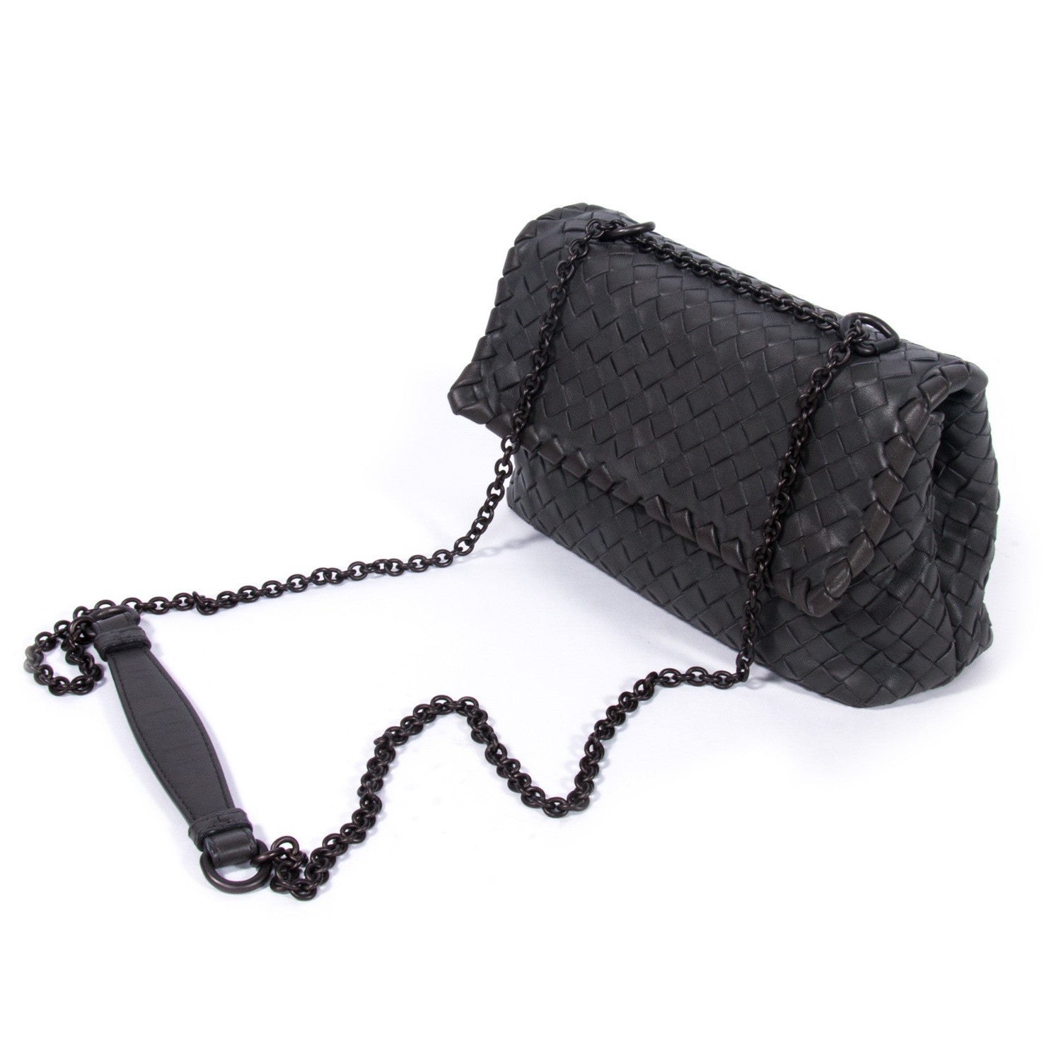 Details: Intrecciato Woven Lambskin Leather / Shoulder Bag / Crossbody / Leather Shoulder Strap With Chain Insets / Flap Top With Snap Closure / Interior Suede Lining / Two Large Inside Compartments And 1 Small Inside Compartment For Cards