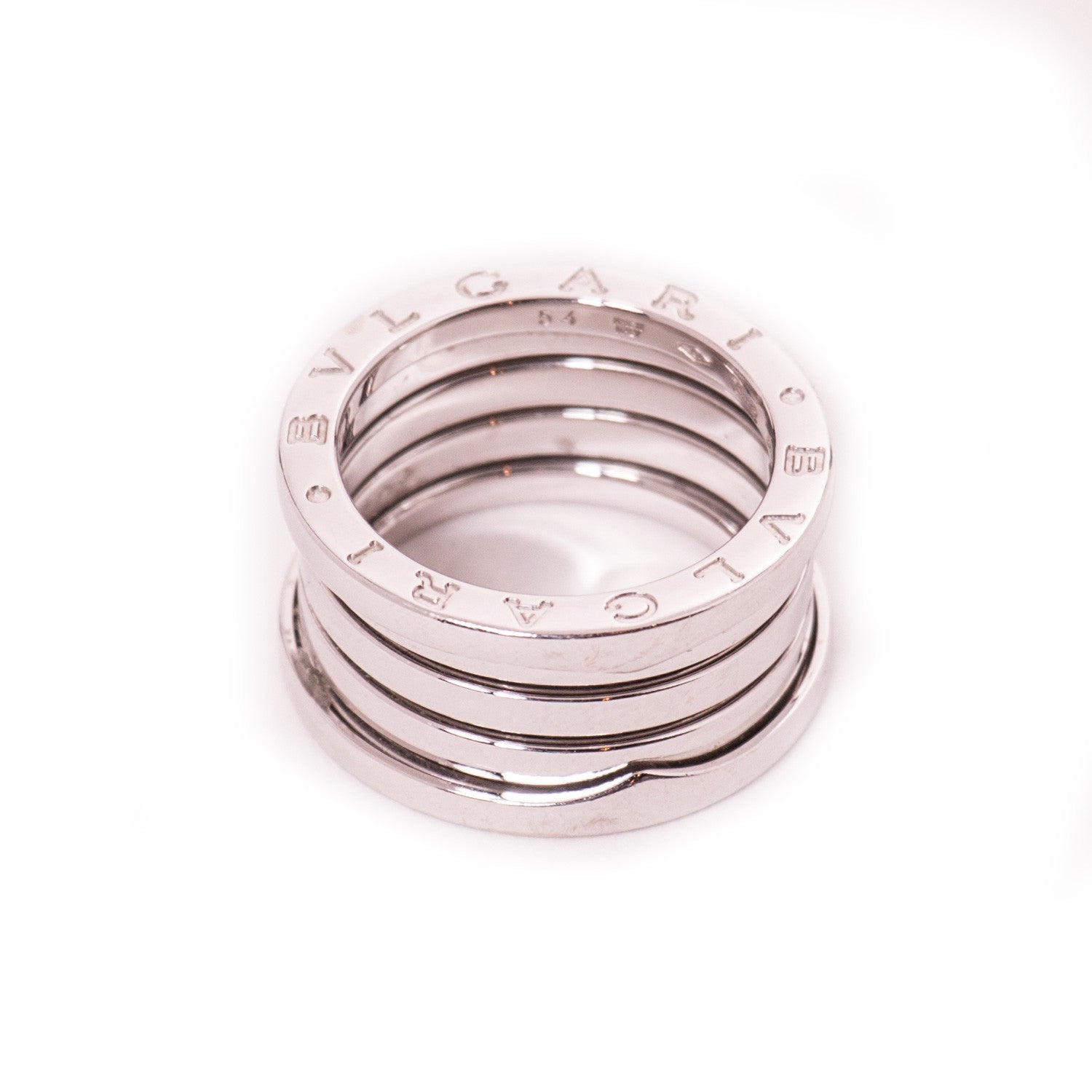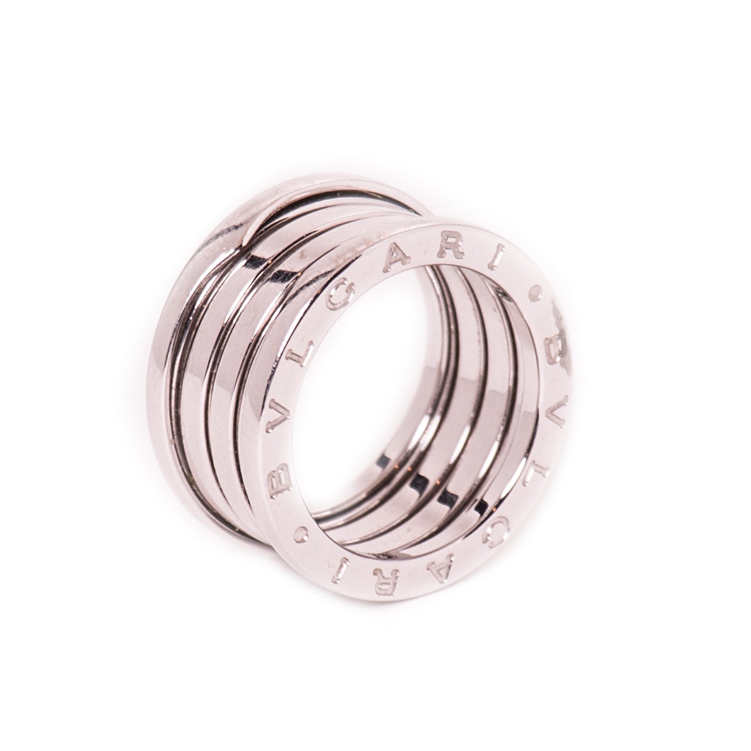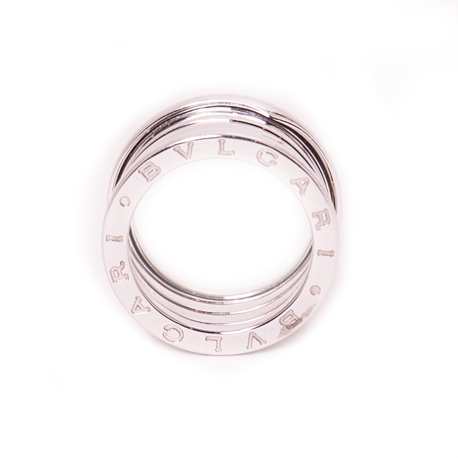 Details: White Gold / 18K / 3-Band Ring / Engraved with Logo Accents / The B.zero1 Reflects The Artful Tubogas Technique, a Bvlgari Trademark