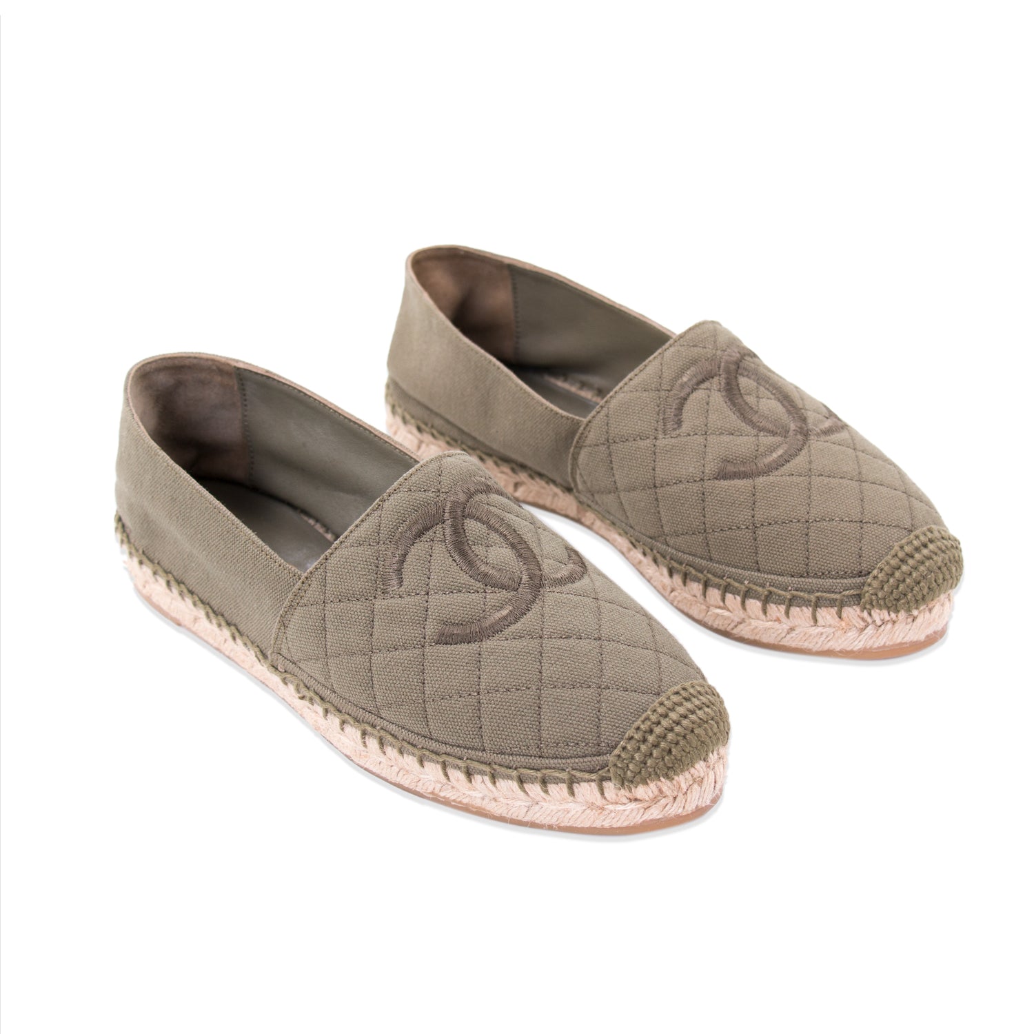 Details: Khaki Quilted Canvas / Cap-Toe / Interlocking CC Logo at Front / Jute Outsoles Throughout / Rubber Sole / Leather Lining