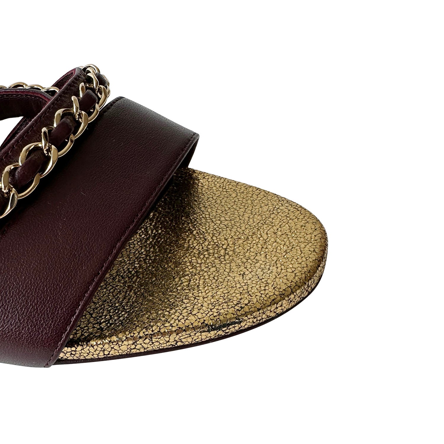 Details: Burgundy Leather / Chanel Logo at Side / Golden Sole and Toe / Interlocking Chain Around