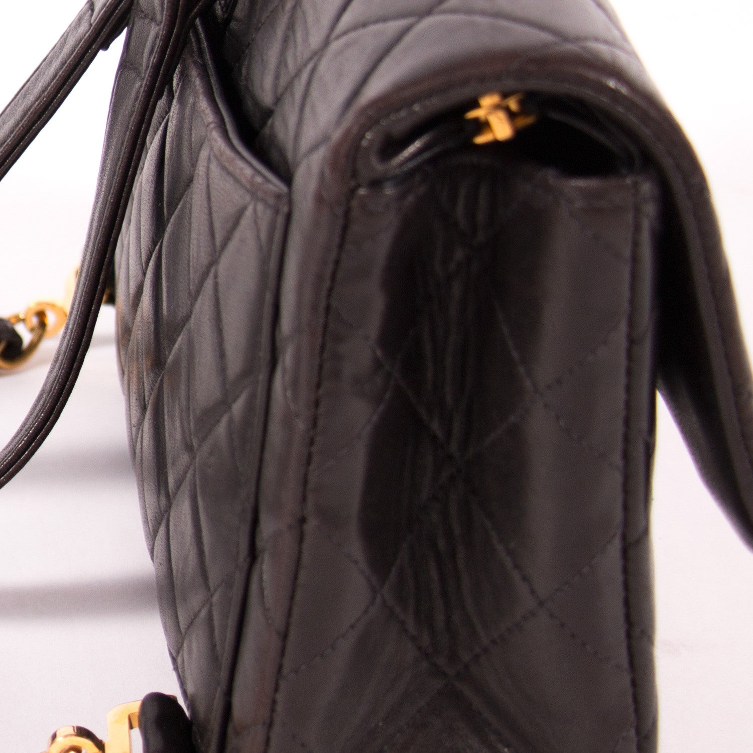 Details: Black Quilted Lambskin Leather / Gold Tone Hardware / Dual Shoulder Straps Featuring Chain-Links / Exterior Flat Pocket At Back / Black Leather Interior Lining / Dual Pockets At Interior Walls, One With Zip Closure / Zip Closure At Inside / Interlocking CC Turn-Lock Flap Closure