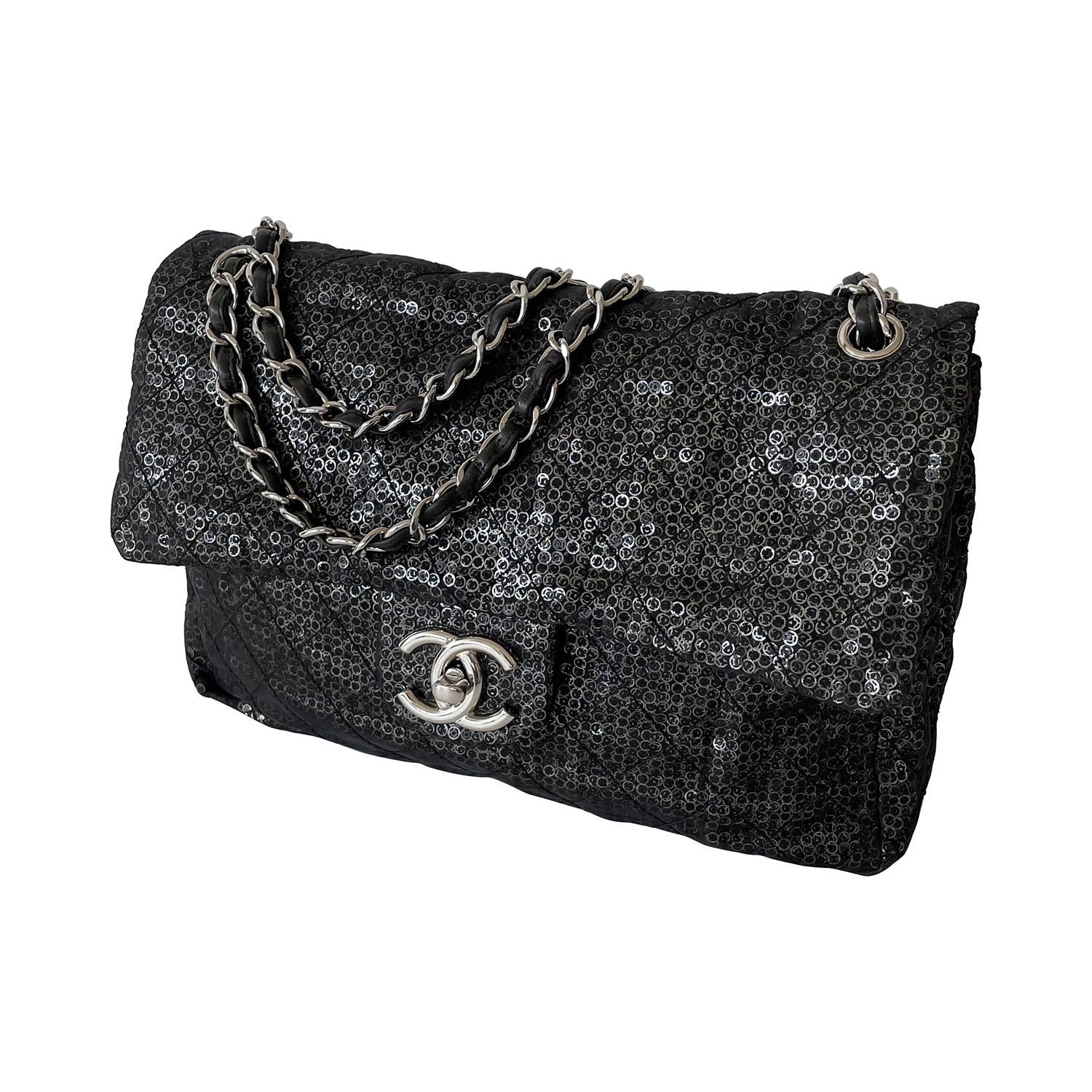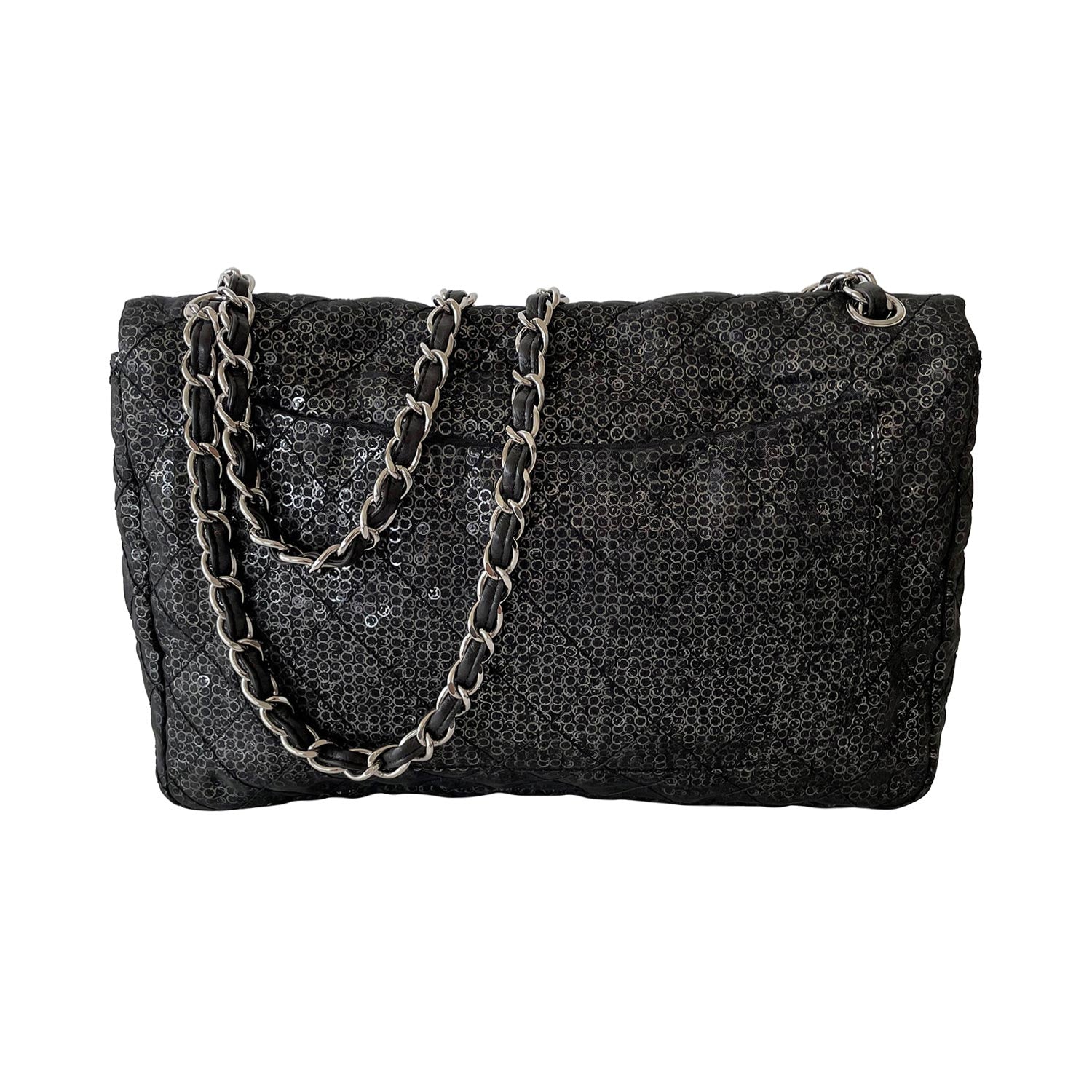Description: Authentic Pre-Owned Chanel Sequins Mesh Jumbo Classic Flap Bag
