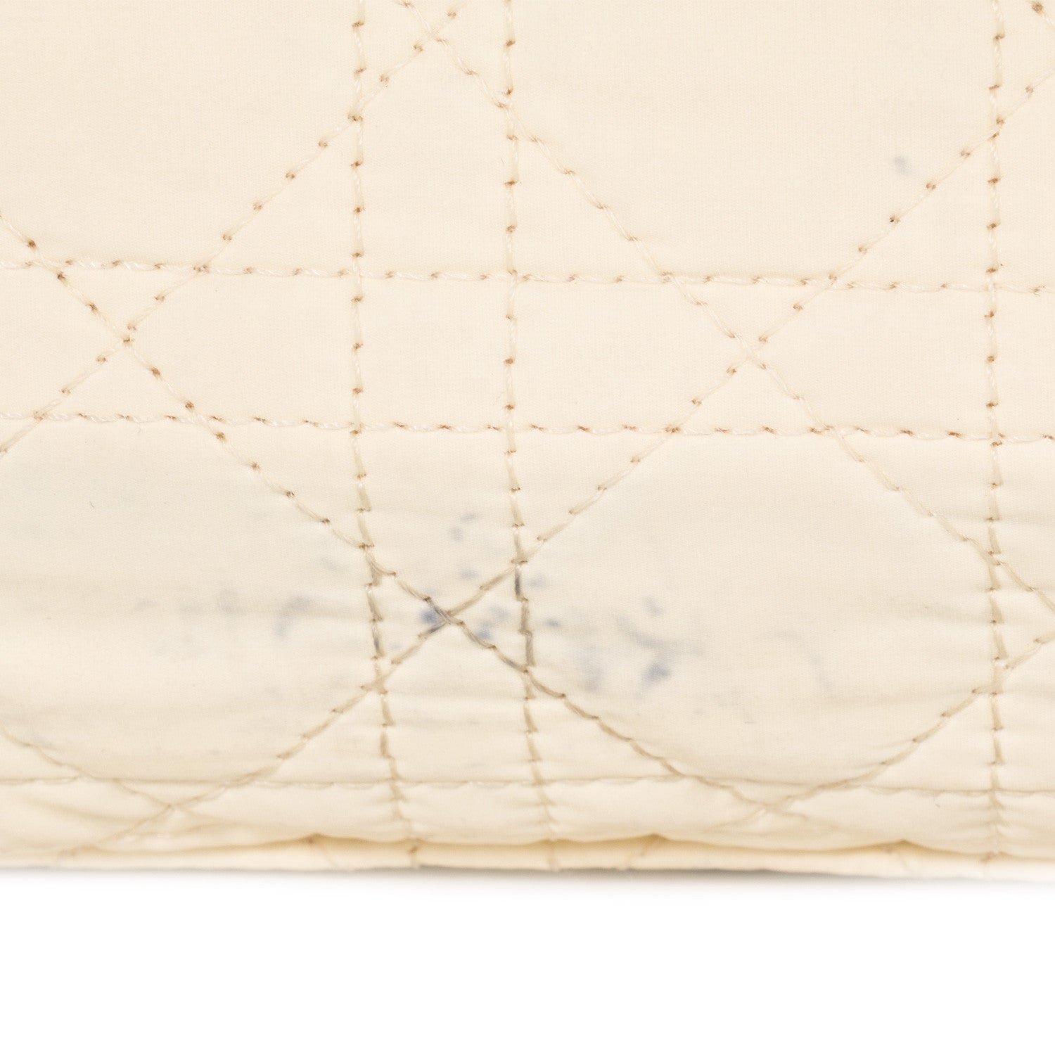 Details: Beige Cannage Nylon / Silver Tone Hardware / Dual Resin Rolled Handles With Flower Embellishment / Detachable Shoulder Strap / Brown Woven Interior Lining / Zip Closure Pocket At Interior Wall / Zip Closure At Top