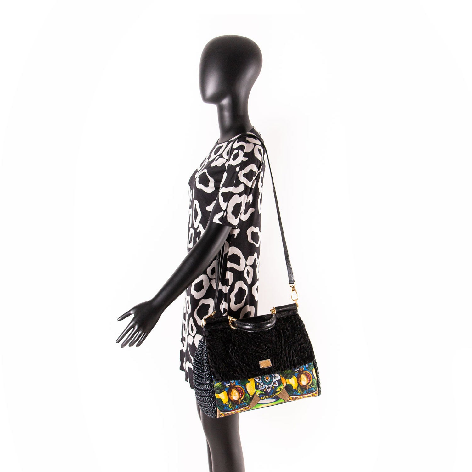 Details: Printed Fabric, Black Velvet and Leather / Gold-Tone Hardware / Detachable Adjustable Shoulder Bag / Top Leather Handle / Protective Studs at Base / Silk Leonard Print at Inside / Three Pockets at Inside, One with Zipper Pocket / Embroidery Throughout / Magnetic Snap Closure
